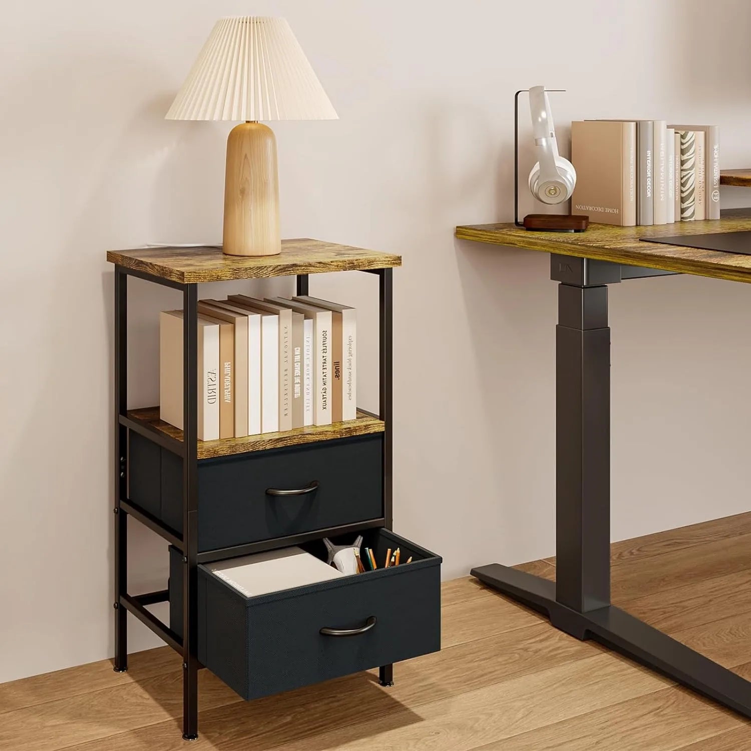 Side Table Bedside Table with 2 Fabric Storage Drawers for Bedroom Living Room Dorm Night Stands for Small Space