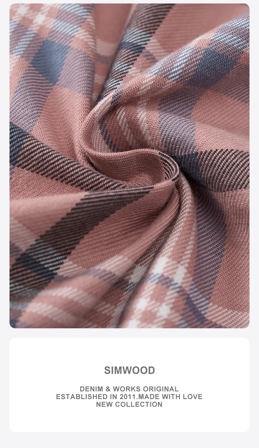 SIMWOOD 2025 Autumn New Oversize 100% Cotton Fabric Plaid Shirts Men Washed Vintage Check Shirts
