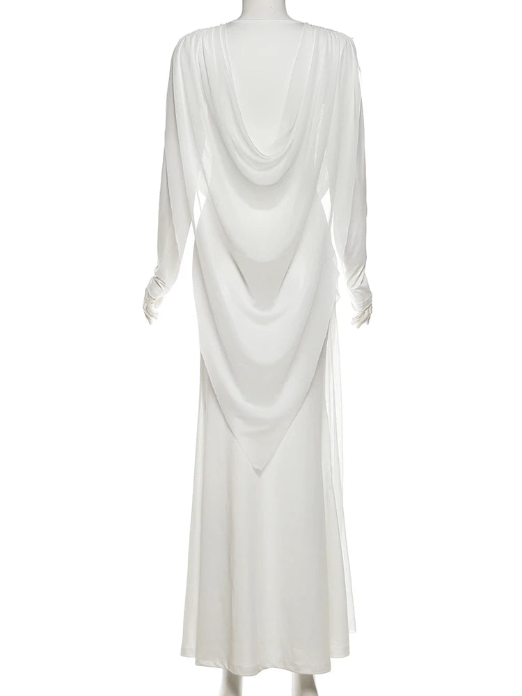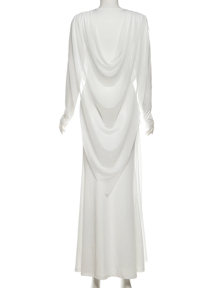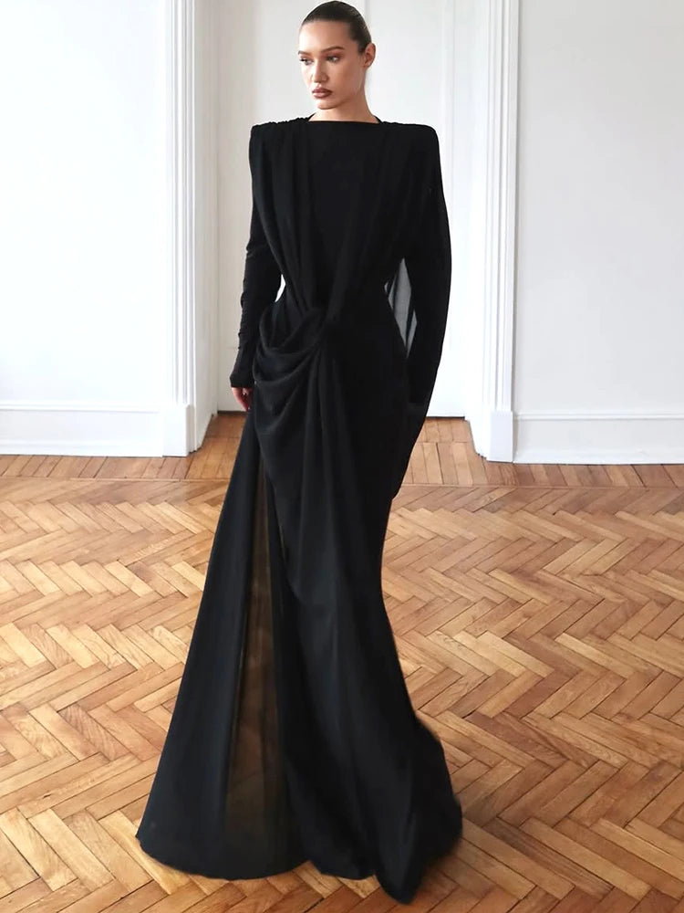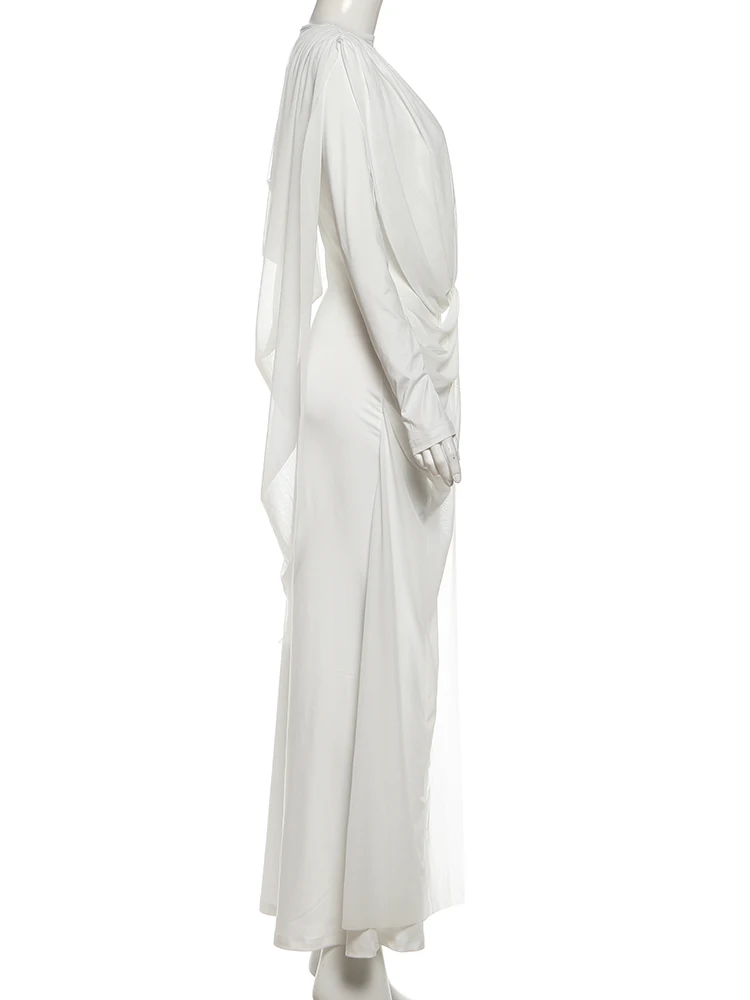 Sisterlinda Shawl Patchwork Dress Women Swing Bandage Ruched New Style Sexy Evening Prom Party Stretch Slim Elegant Maxi Bodycon