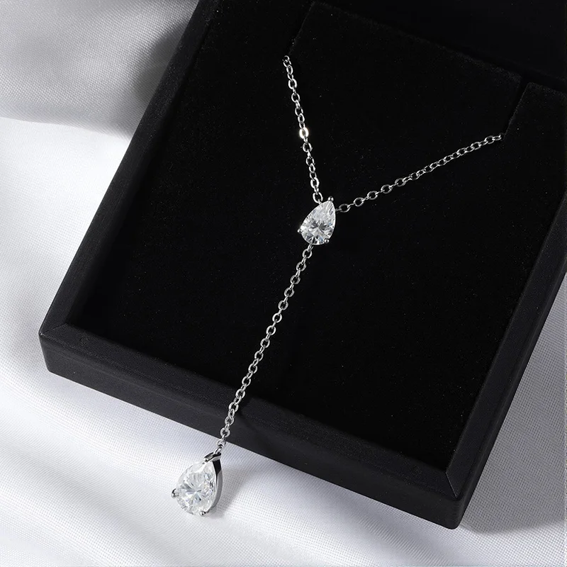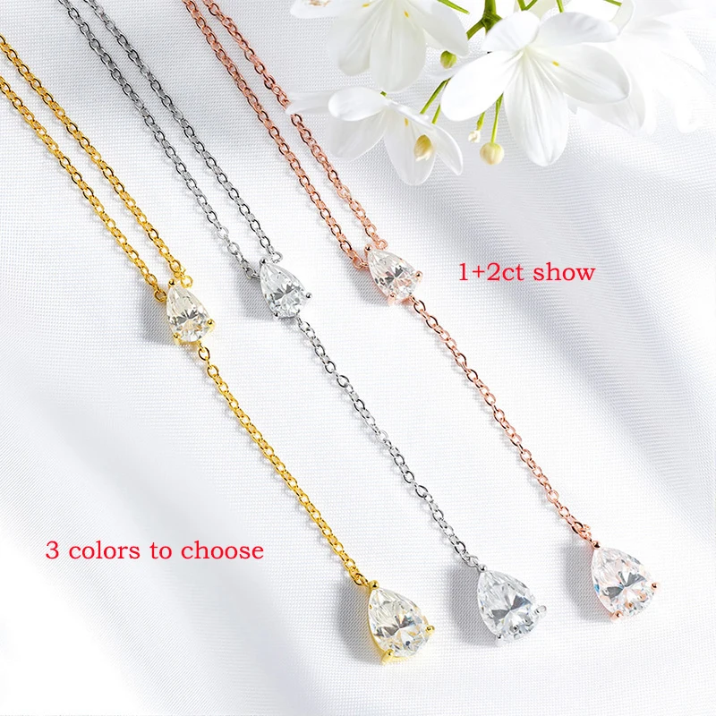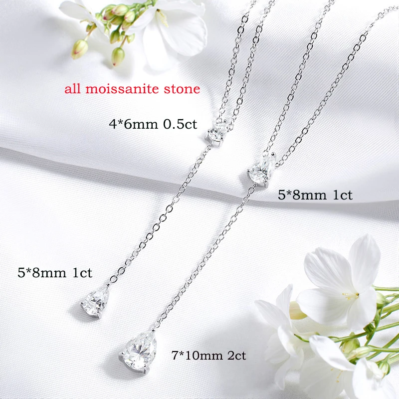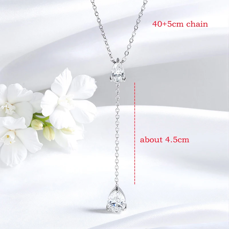 Smyoue 18k Plated Pear Cut All Moissanite Necklace Pendant 2 Gems Luxury Water Drop Jewelry Women Girls Real 925 Sterling Silver