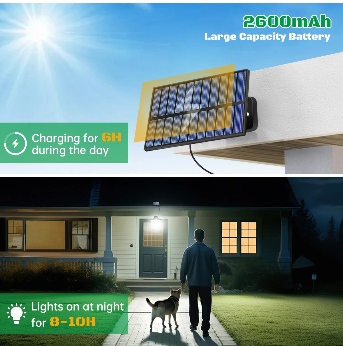 【Solar-Powered & Energy-Free】-- Built-in high-efficiency solar panel charges automatically under sunlight (daytime off/charge, nighttime on) – 0 electricity cost and eco-friendly