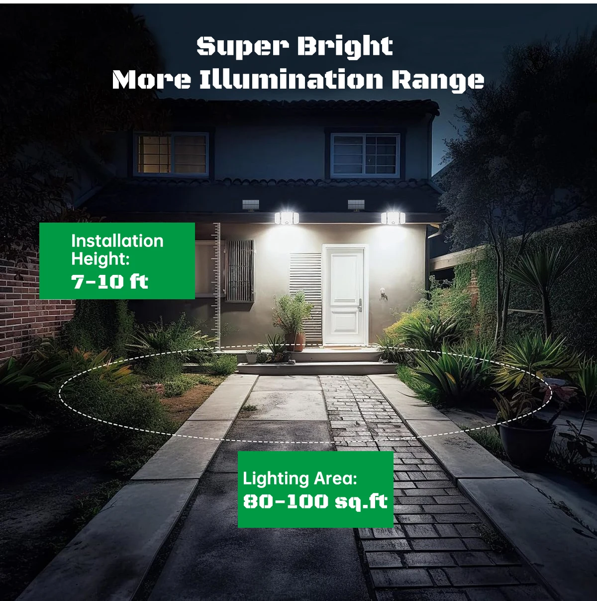 【Smart 3-Mode Lighting】-- Choose from ① Motion-Activated Bright Light (auto-off after motion), ② Motion to Bright + Dim Mode (post-motion soft glow), or ③ All-Night Constant Light – perfect for security, ambiance, or pathways.