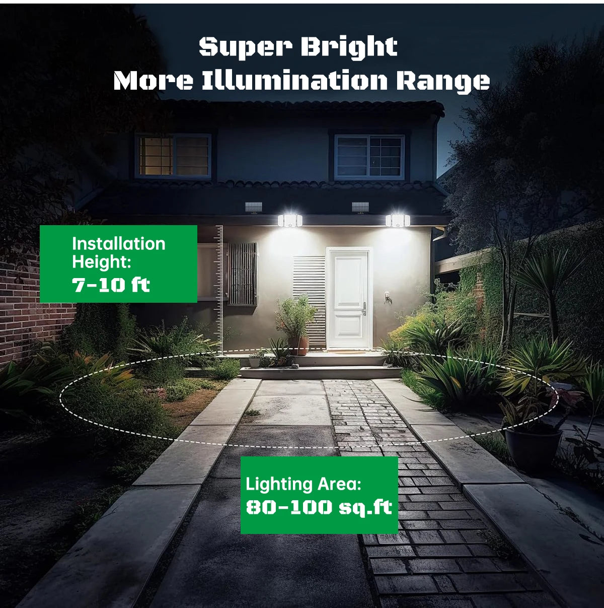 【Wide Coverage 】-- 270° adjustable lighting heads and 3-side design illuminate gardens, walls, driveways, or barns evenly; remote control lets you tweak modes from up to 30ft away.