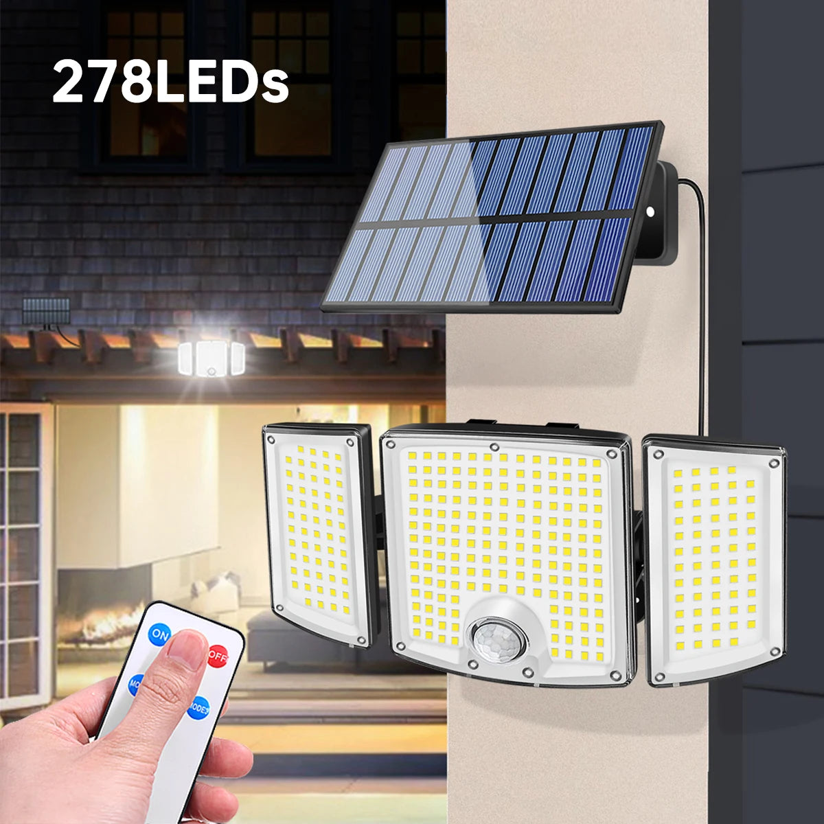 Solar Garden Light Outdoor 278 LED IP65 Waterproof 3 Modes Remote Adjustable Angle Solar Wall Lamp for Yard Porch Barn Driveway