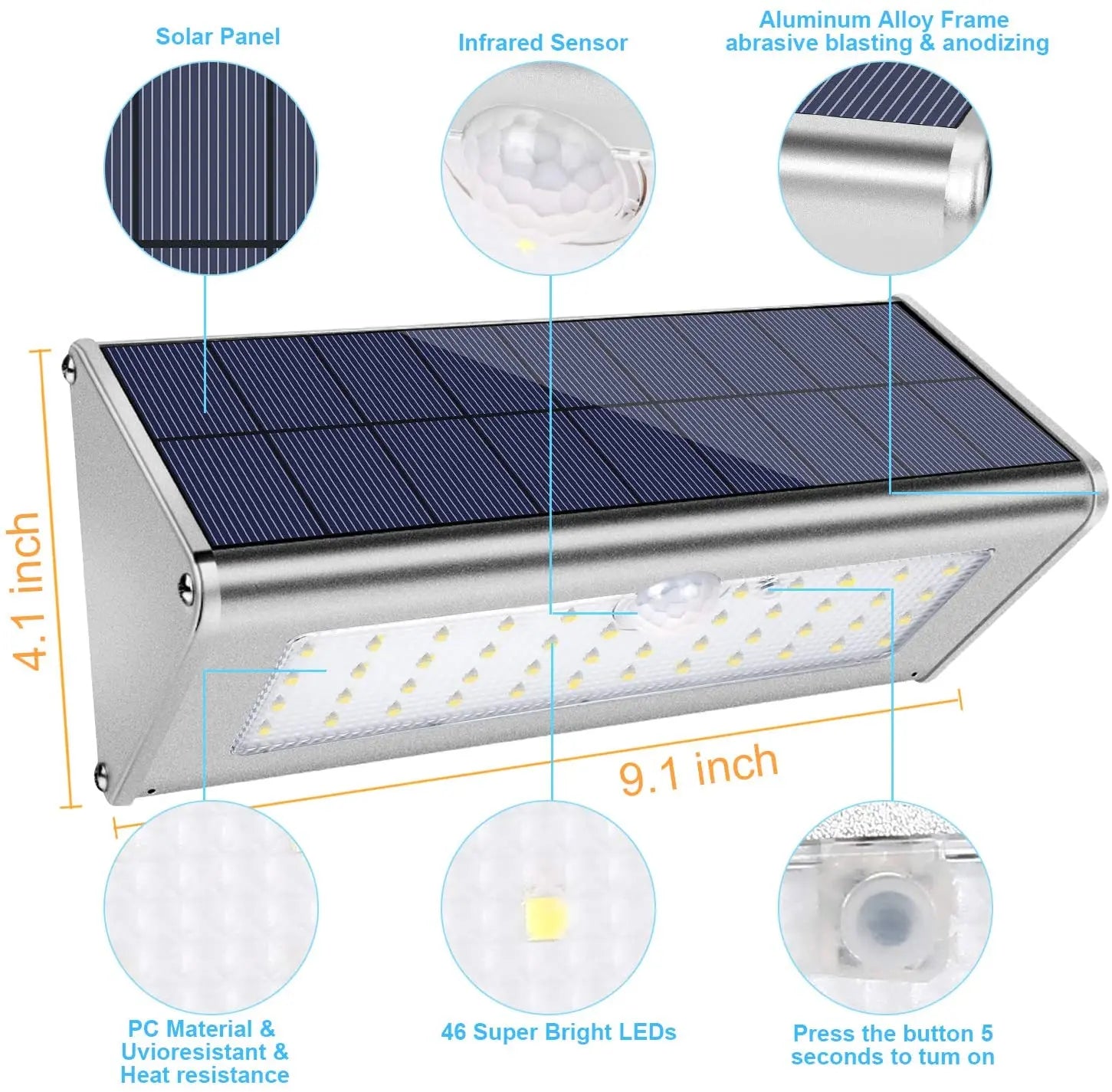 Solar LED Light Outdoor WaterProof Aluminum RIR Motion Sensor Solar Powered Path Lamp for Garden Fence Wall Security Lighting