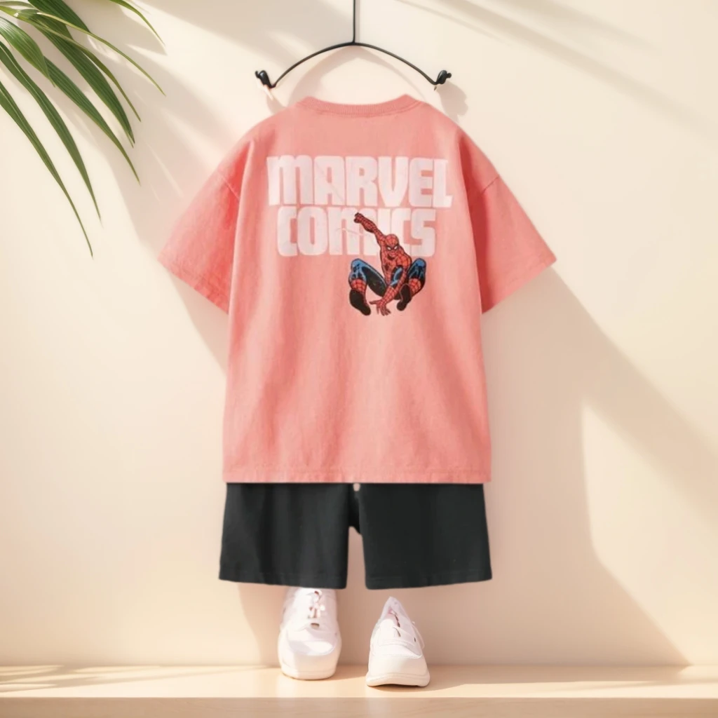 Spiderman T-shirt Shorts Two Piece Set 2025 New Summer Clothing Popular Design Baby Boy Short Sleeve Suit Tees Tracksuits