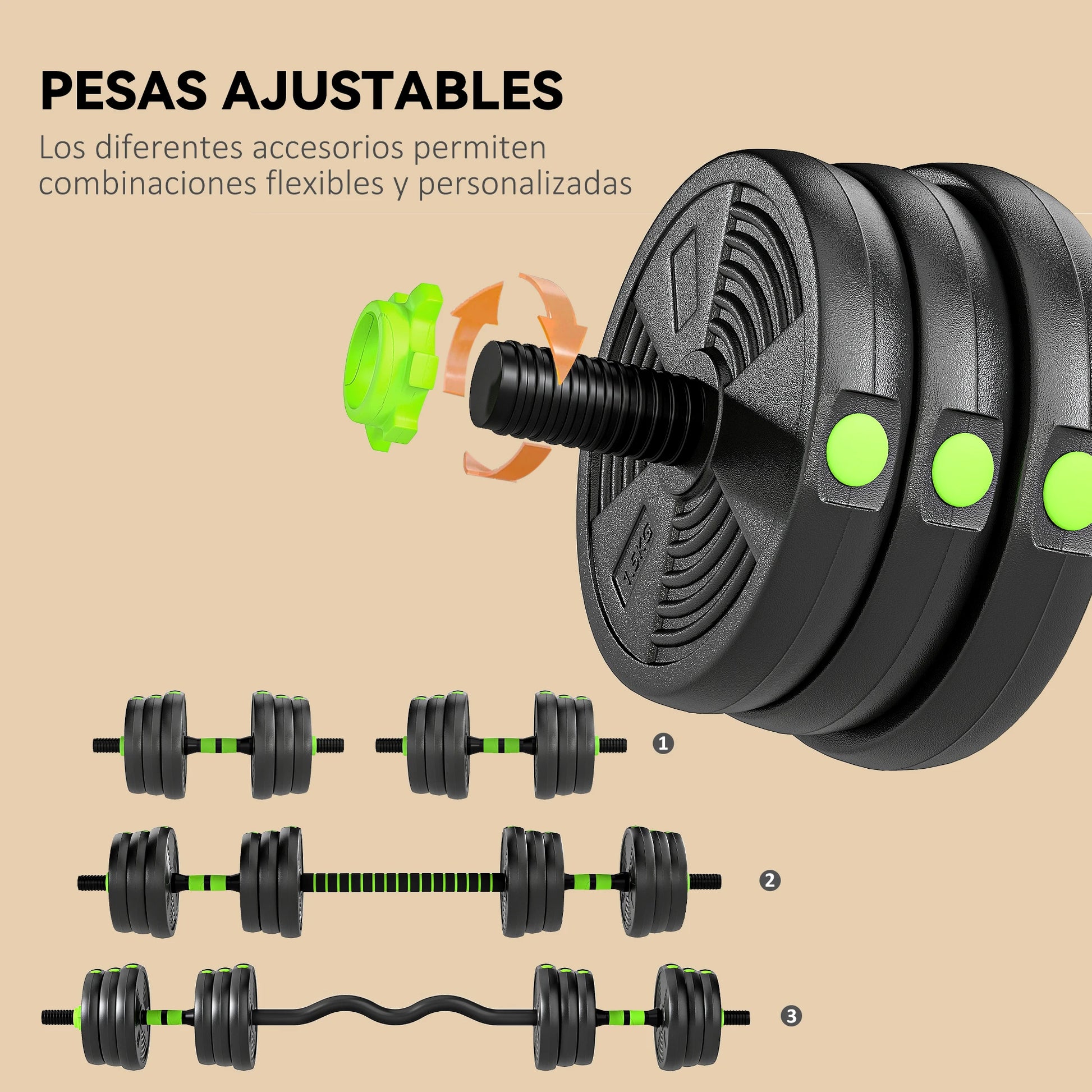Enhance your workouts at home with the sportnow 3-in-1 multifunctional weight set.With a system that allows you to alternate between dumbbells, straight bar and ez curl bar, it easily adapts to different types of exercises.Plastic discs with sand and non-slip handles ensure comfort and safety.Compact and easy to assemble, this adjustable dumbbell set is ideal for small spaces.