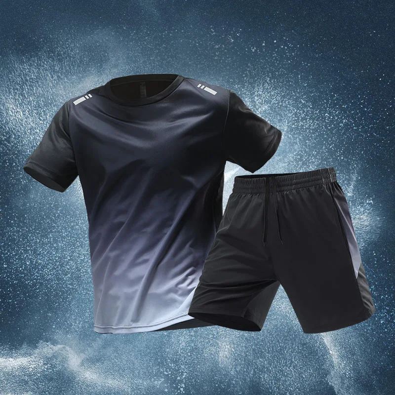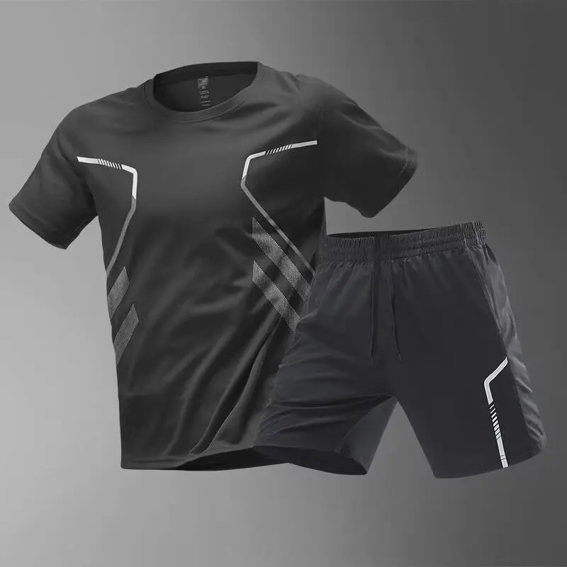 Sports cycling suit men's ice silk quick-drying clothes fitness t-shirt running short sleeves shorts training clothes