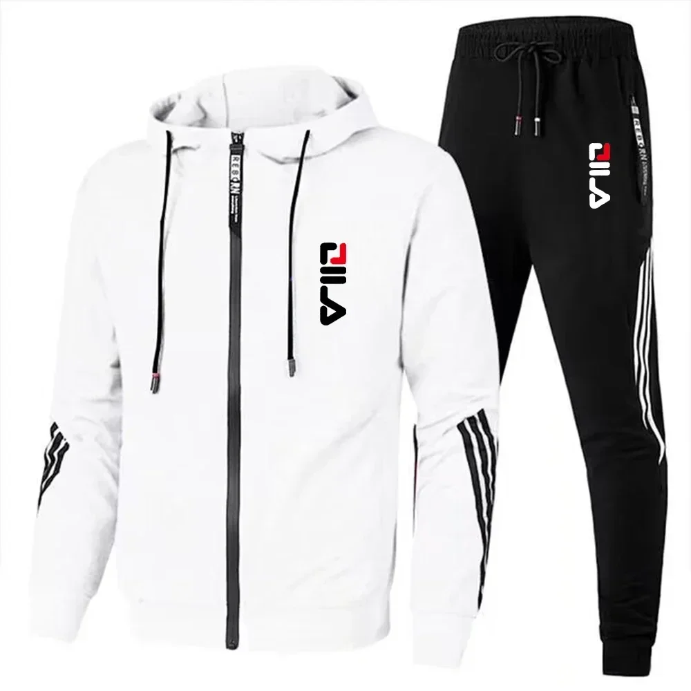 Spring and Autumn Fashion Men's fitness and sports set, featuring a hooded casual jacket and jogging pants in two pieces