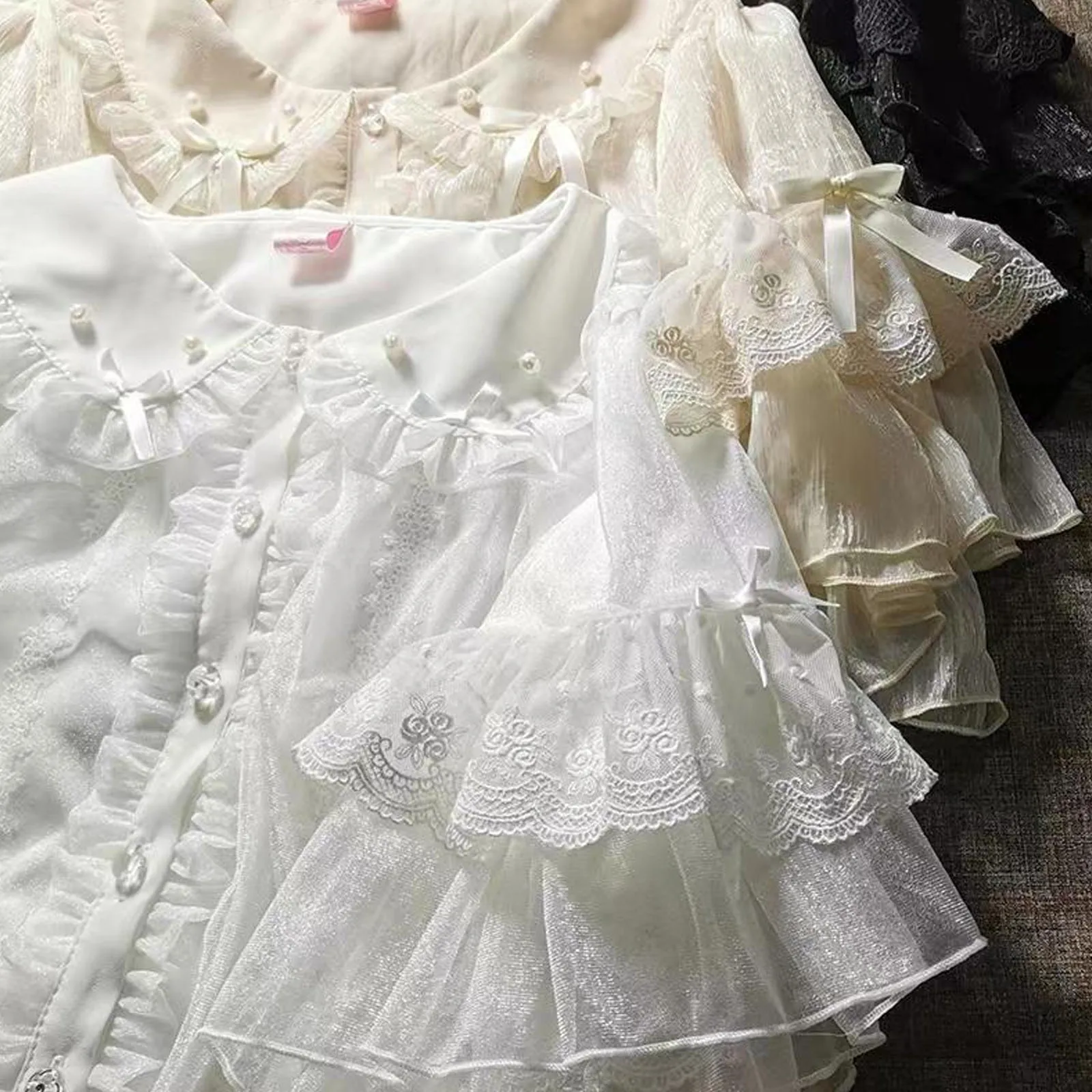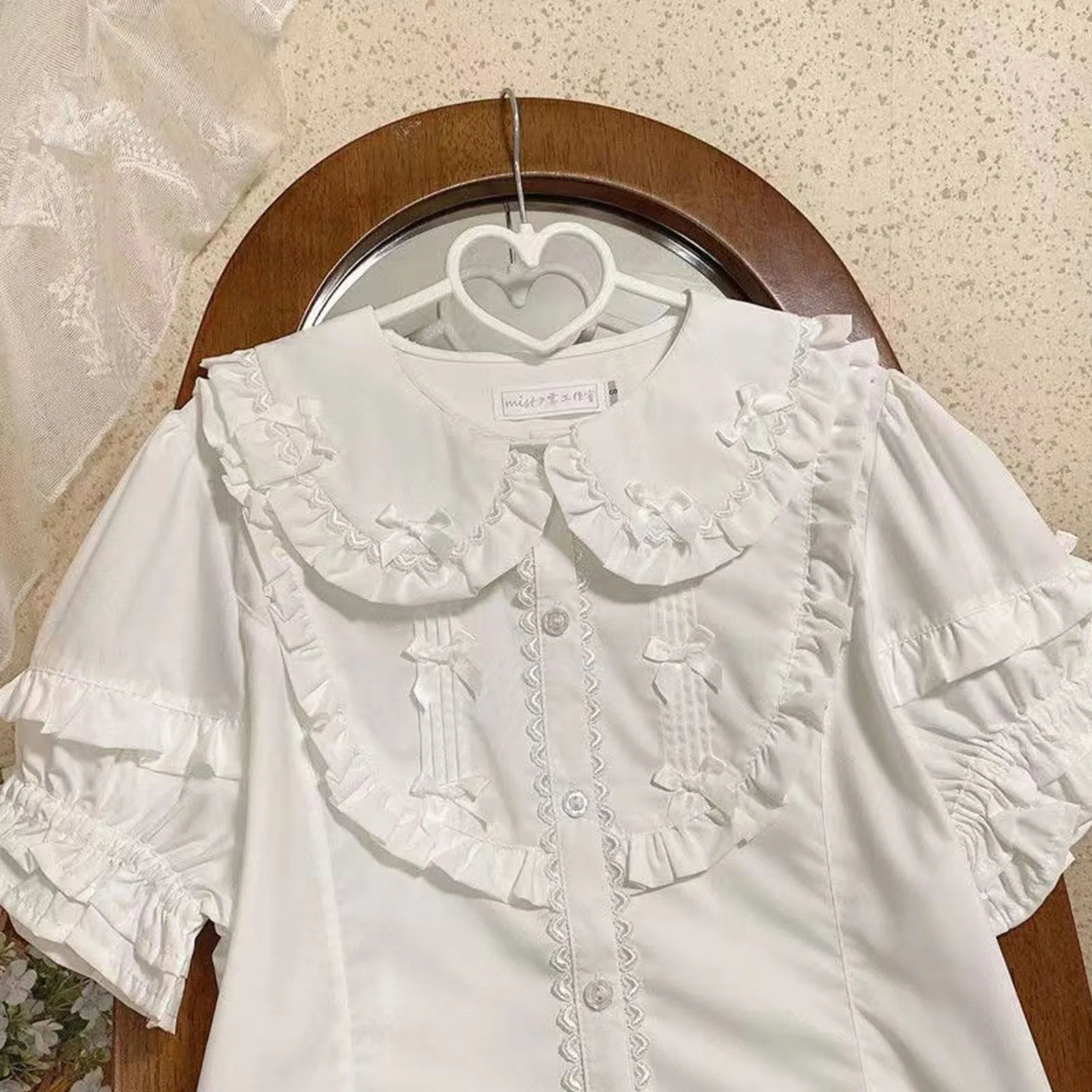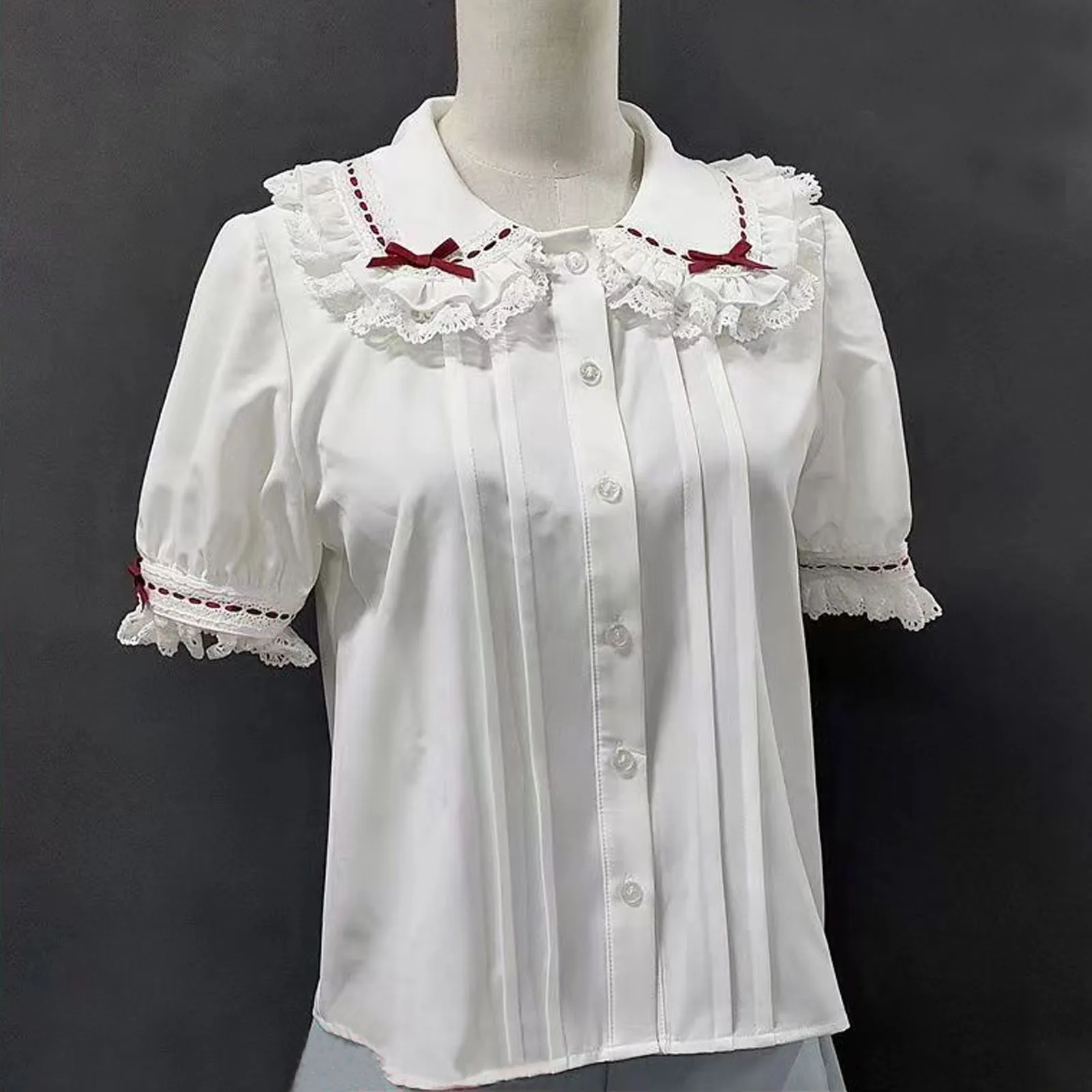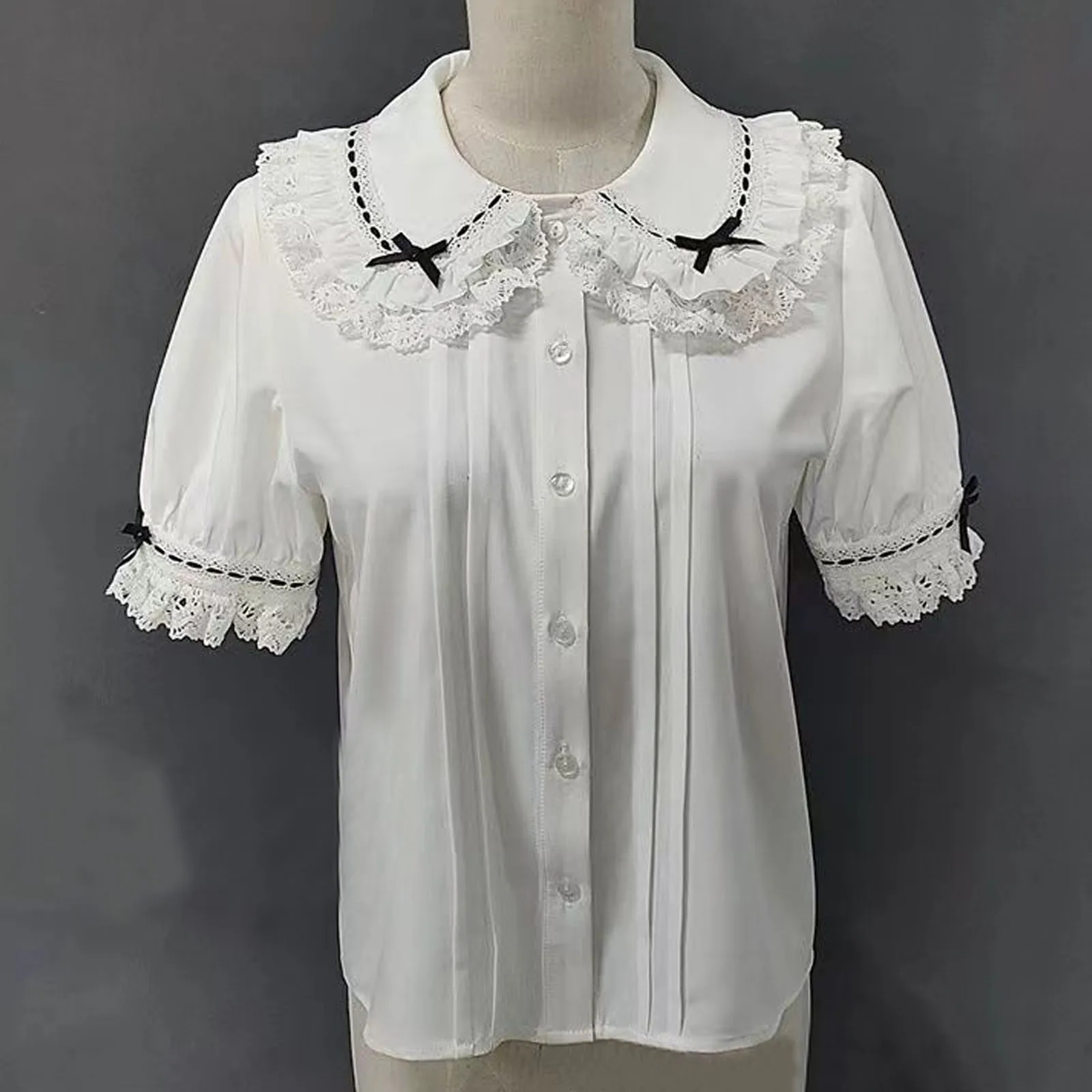 Spring Blouse Women Japanese Kawaii Cute Lace Patchwork Peter Pan Collar Shirt Vintage Sweet Embroidery Top Blusas