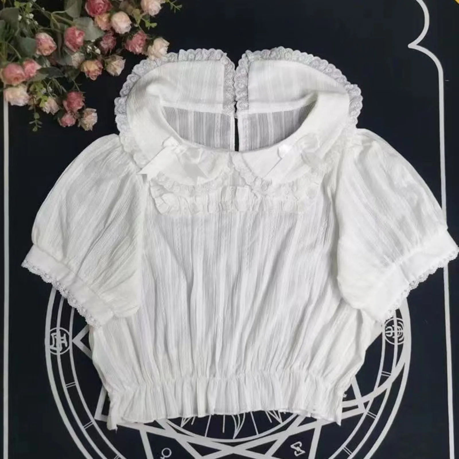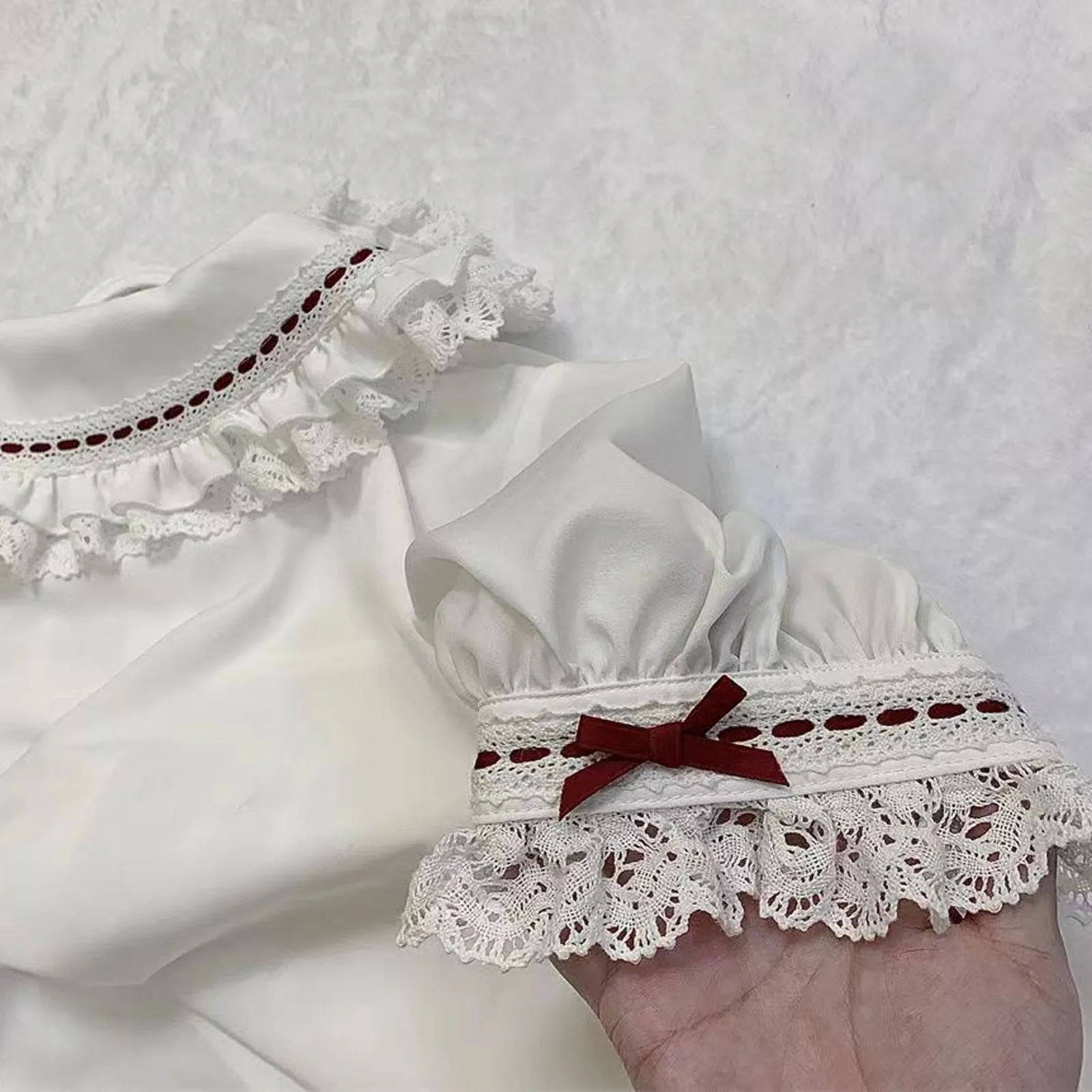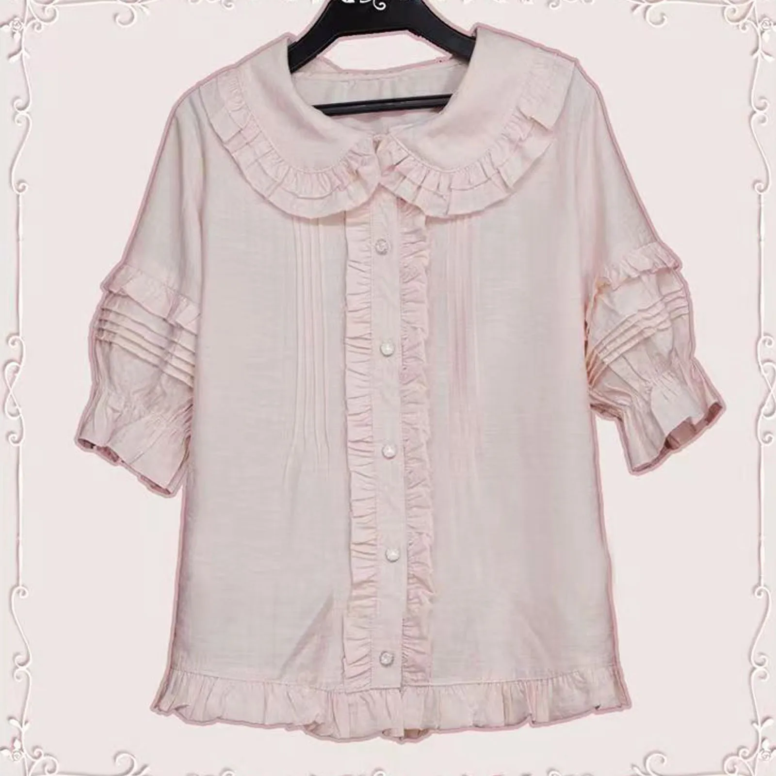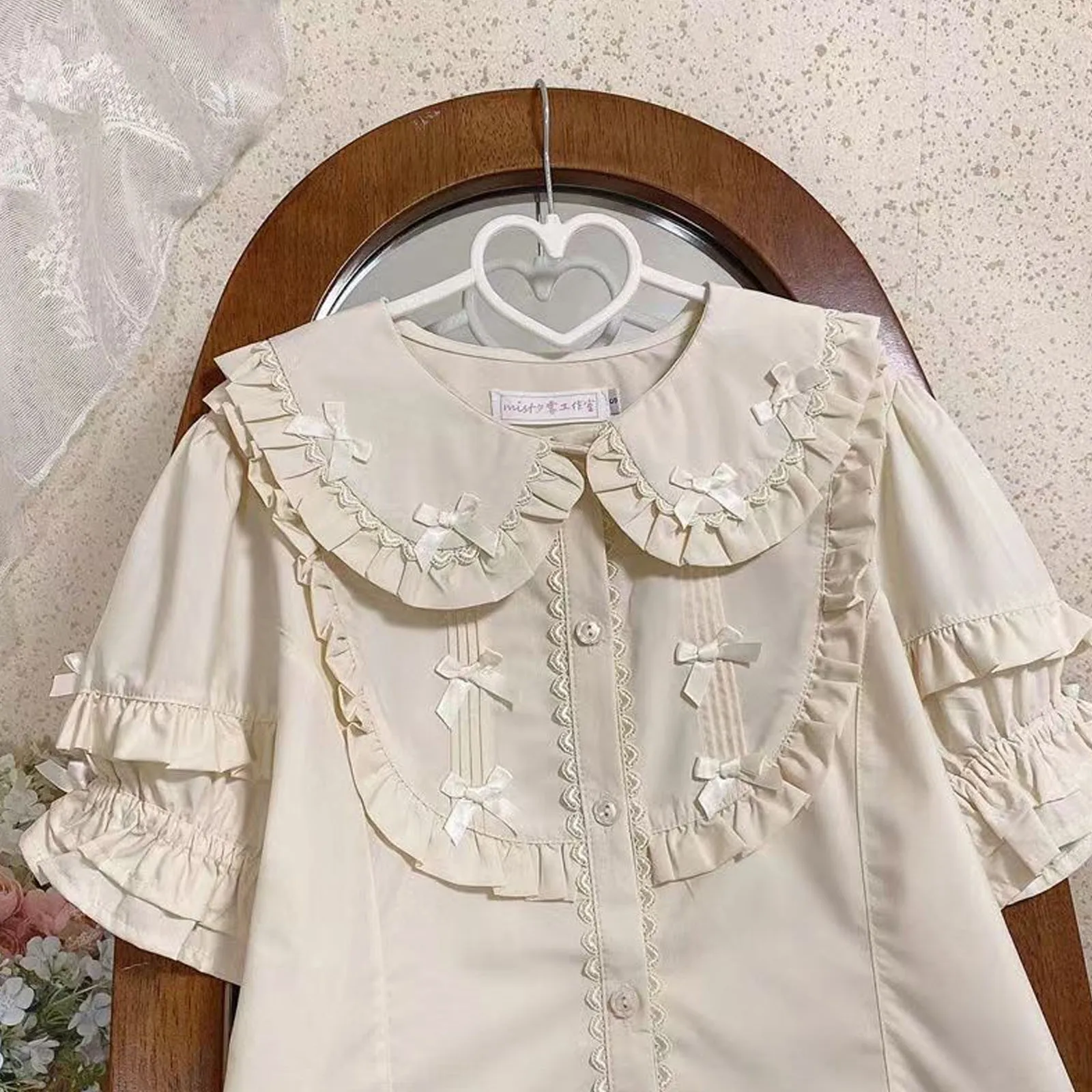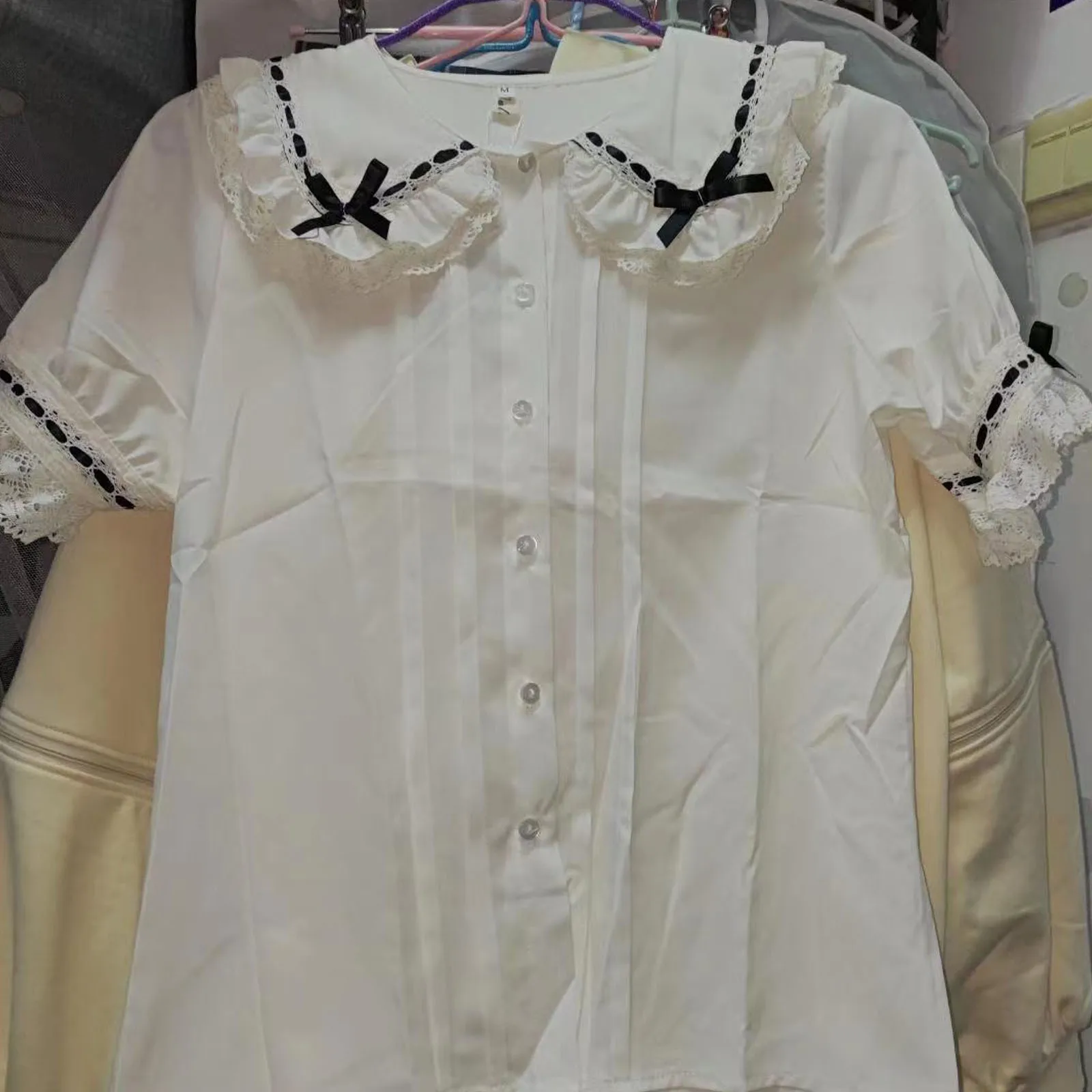 Spring Blouse Women Japanese Kawaii Cute Lace Patchwork Peter Pan Collar Shirt Vintage Sweet Embroidery Top Blusas