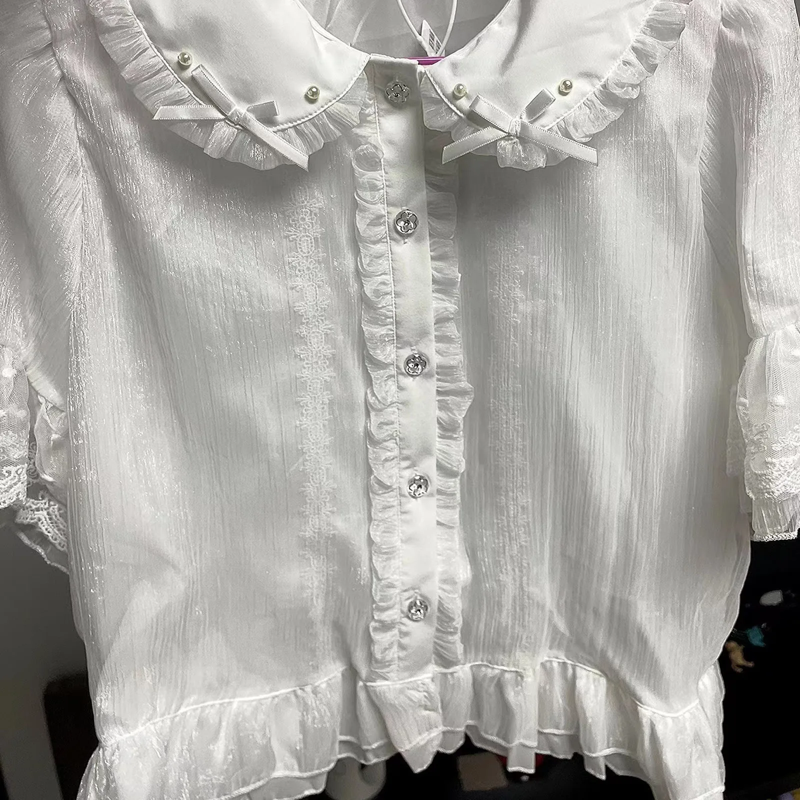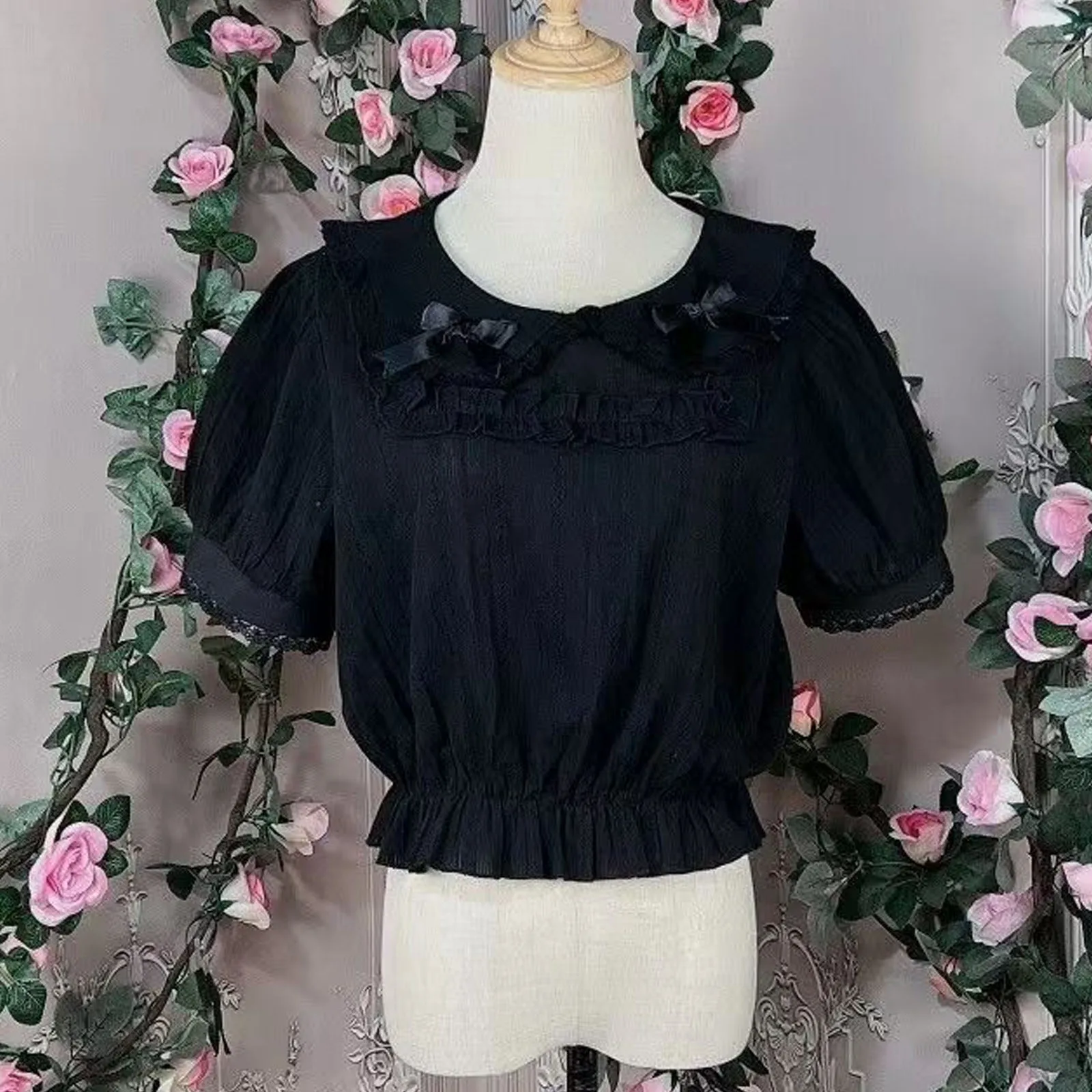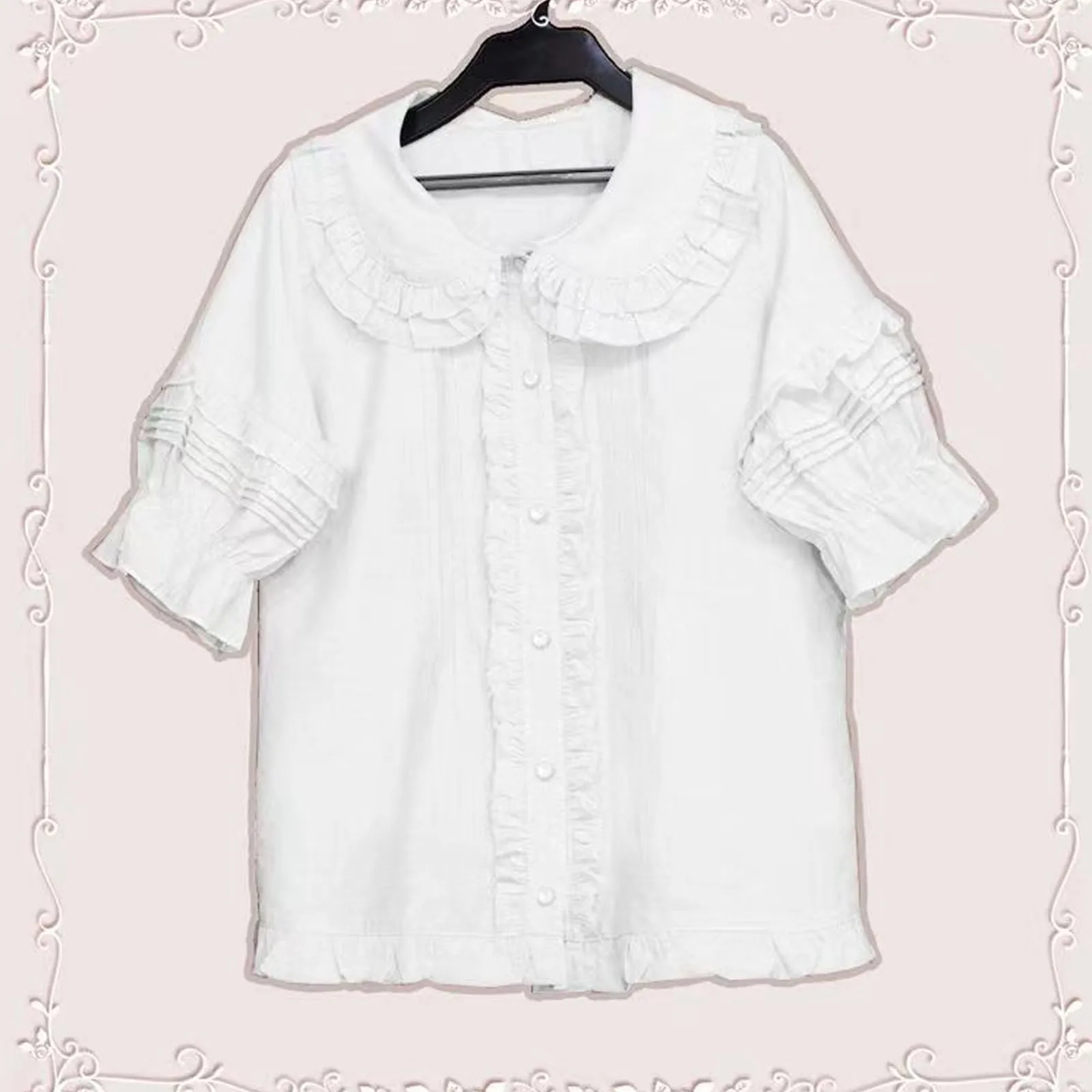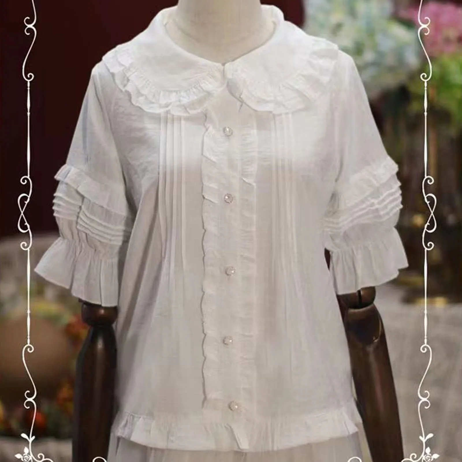 Spring Blouse Women Japanese Kawaii Cute Lace Patchwork Peter Pan Collar Shirt Vintage Sweet Embroidery Top Blusas