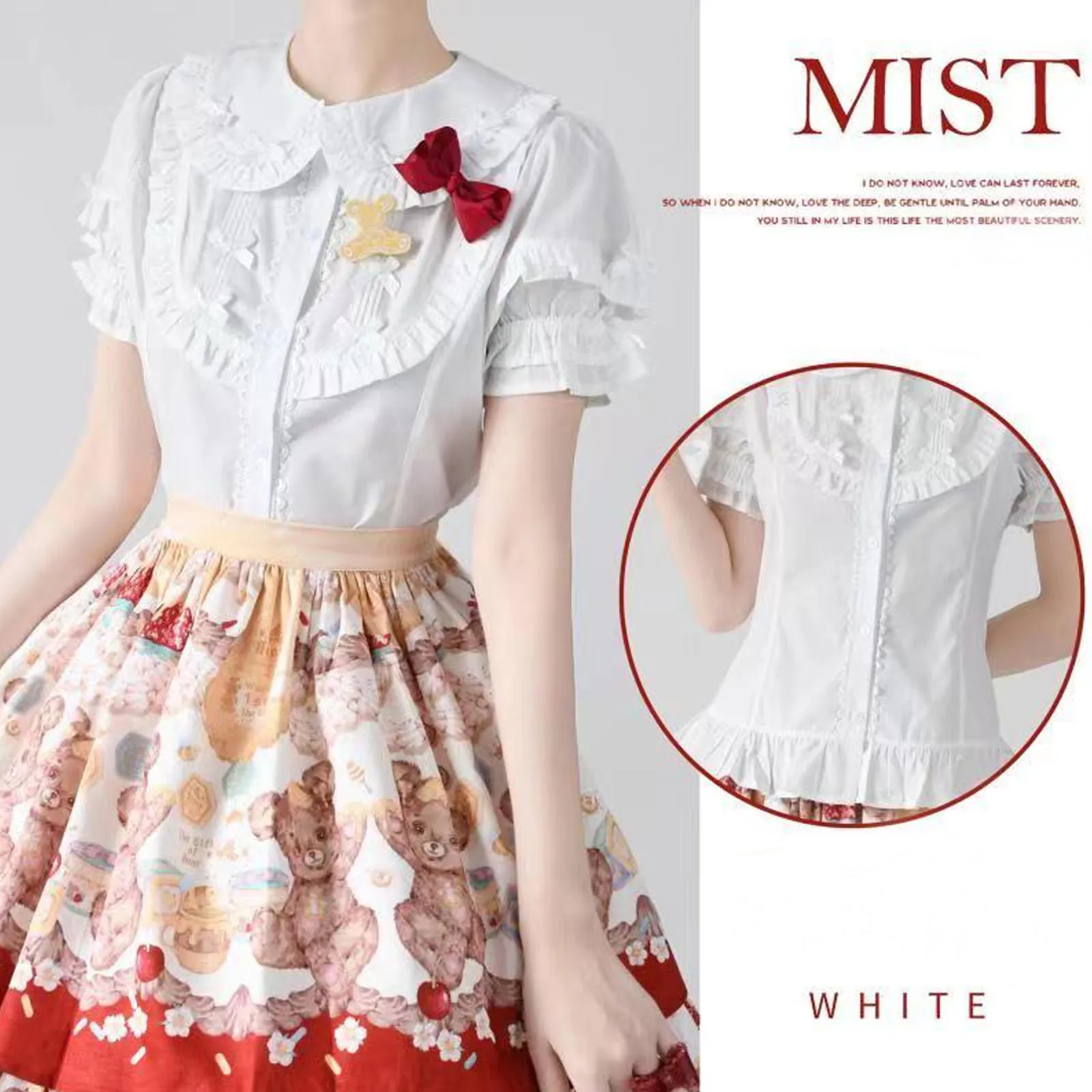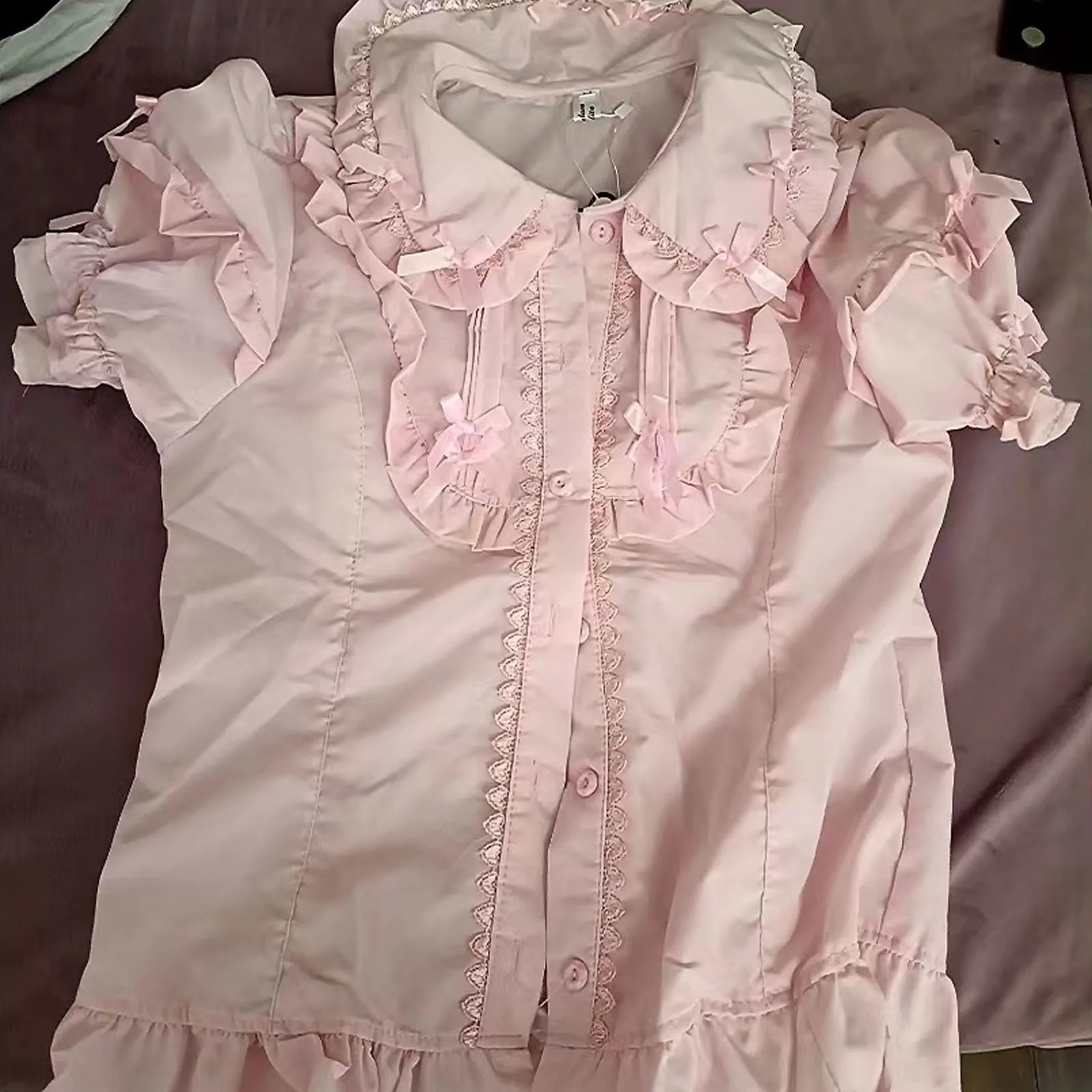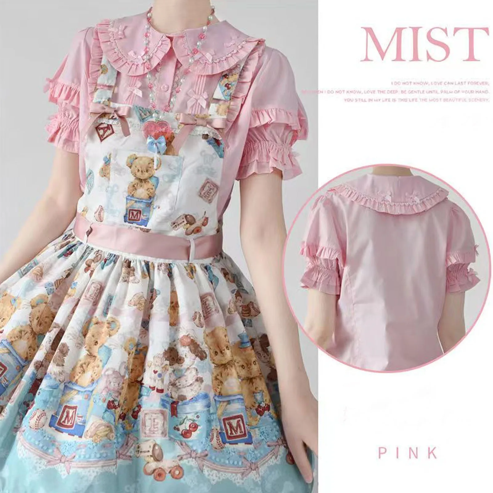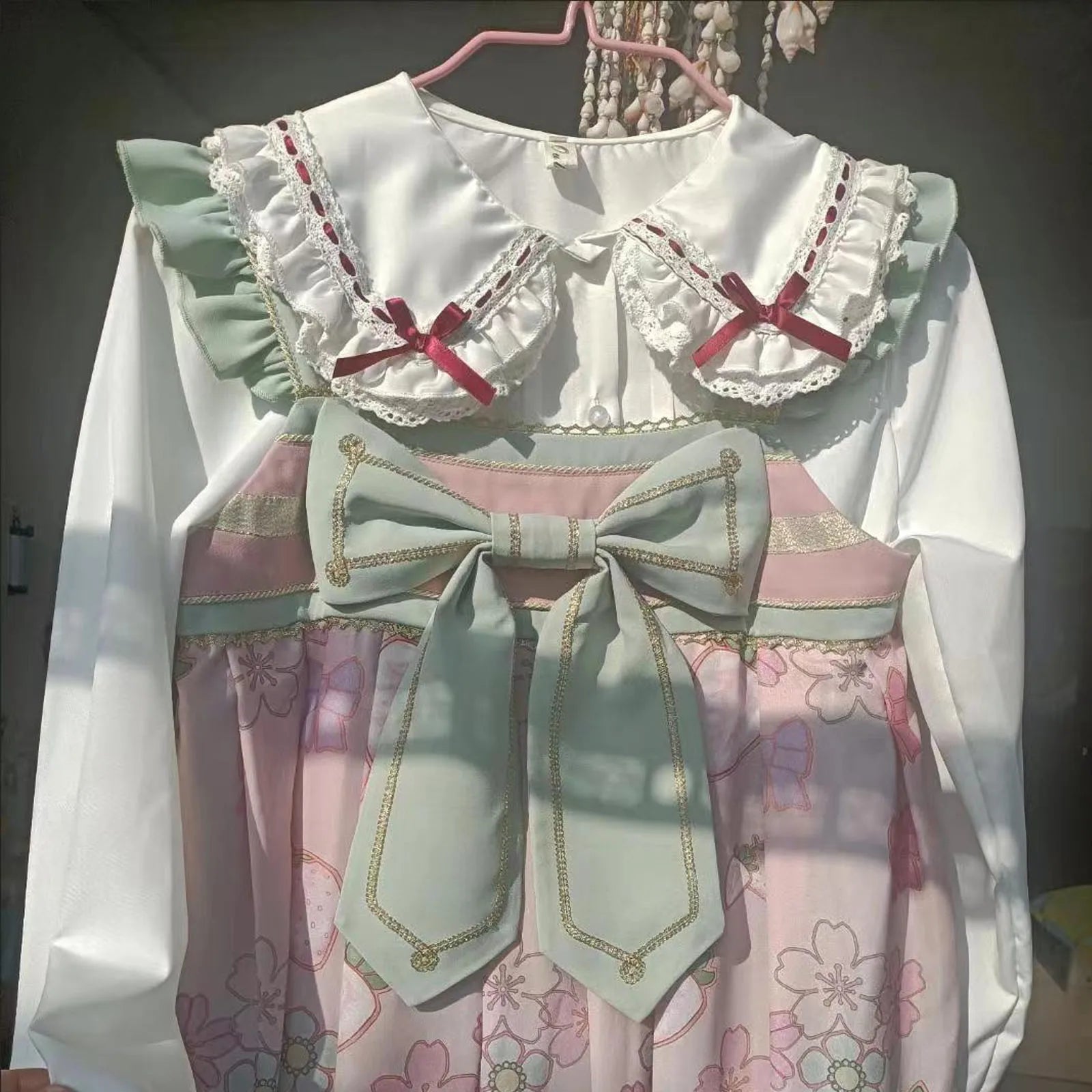 Spring Blouse Women Japanese Kawaii Cute Lace Patchwork Peter Pan Collar Shirt Vintage Sweet Embroidery Top Blusas