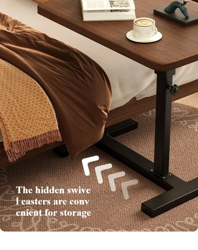Square Small Side Table Bedside Table Household Mobile Desk Bedroom with Wheel Easy Lifting Learning Desk Space Saving Tea Table