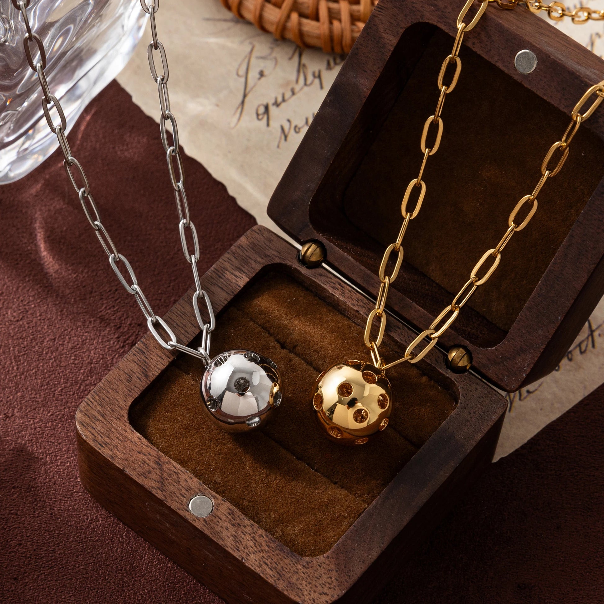 Stainless steel fashionable ball chain, fresh, sweet, trendy sports necklace pendant, gold-plated and color preserving