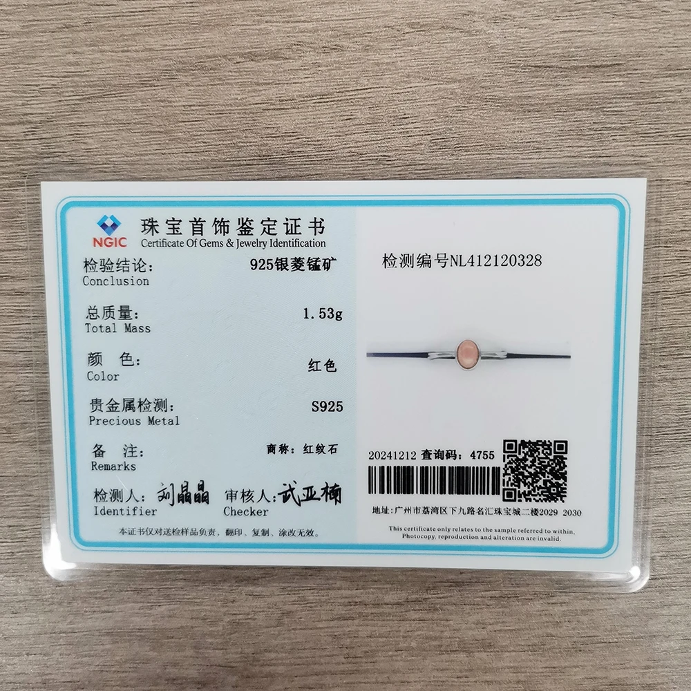 Main Stone: 7x5mm Natural Rhodochrosite (Pink with Cloudy Veins, Oval Shape)