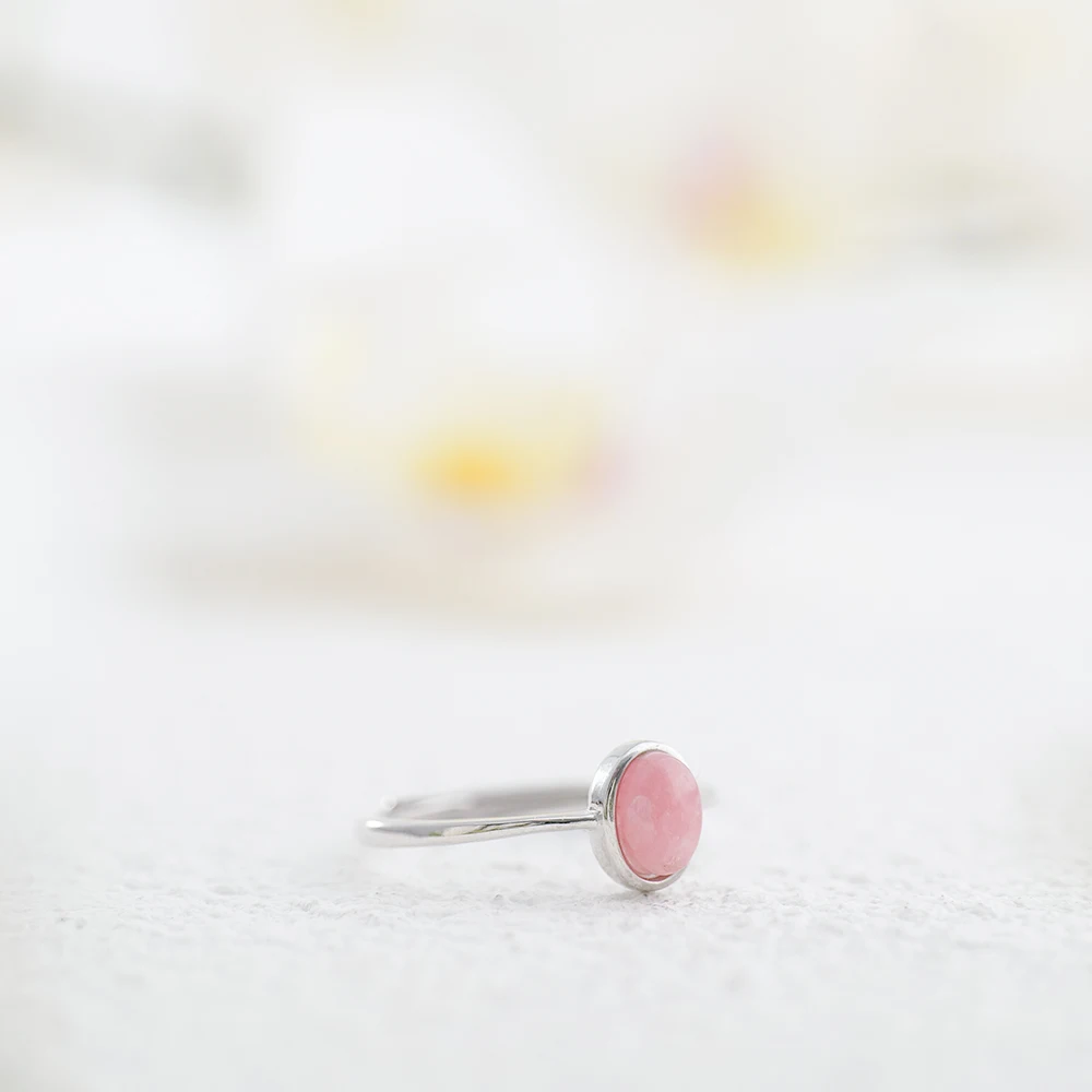 Natural Rhodochrosite Ring, Love Stone Jewelry, Valentine's Gift, Adjustable Silver Ring
