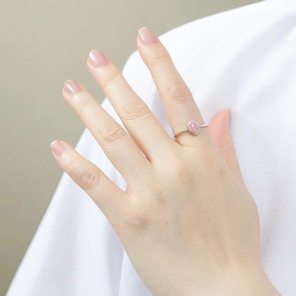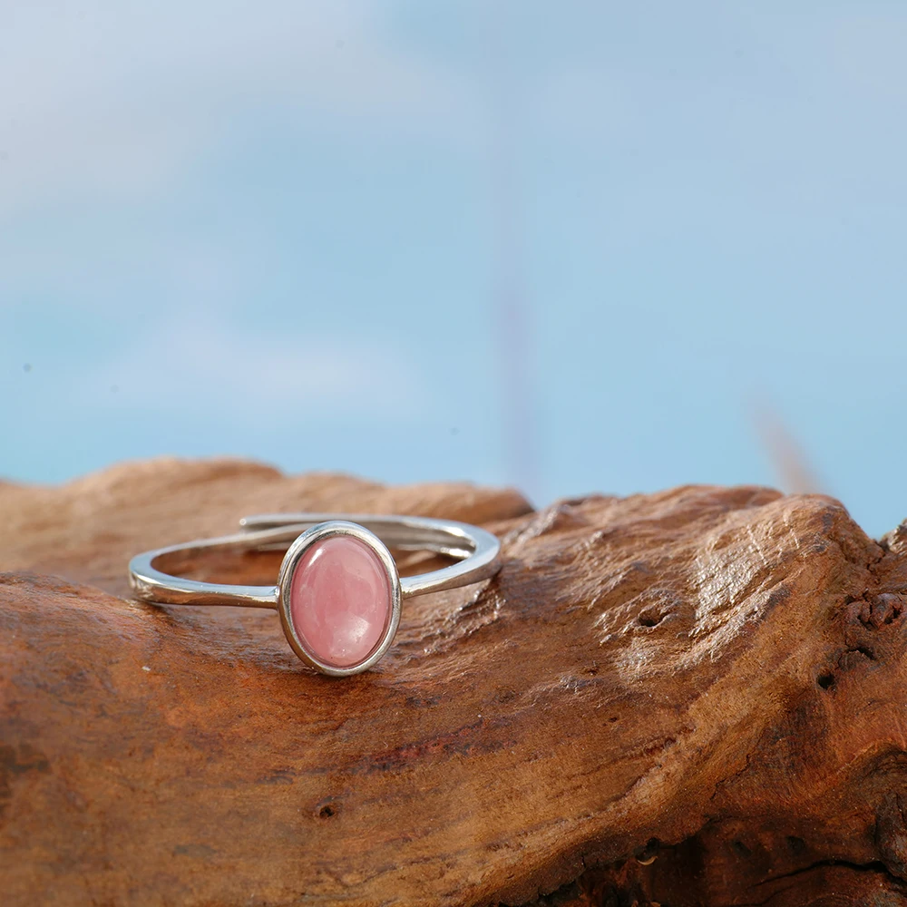 Stackable S925 Silver Women's Ring Romantic Pink Rhodochrosite Rose Quartz Natural Heart Chakra Jewelry for Her Daily Wear