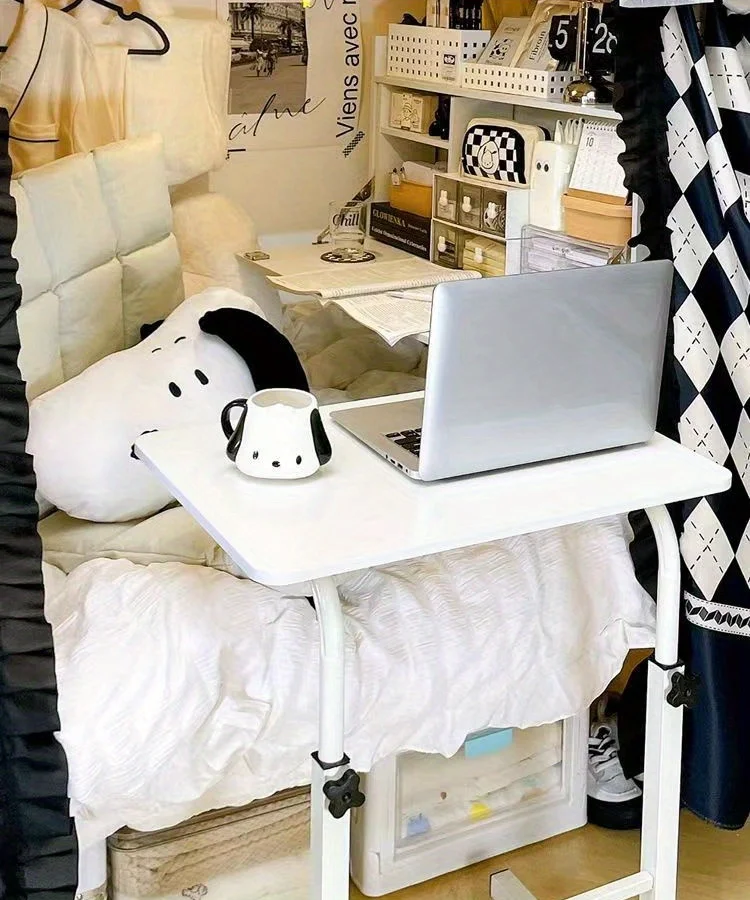 Study Table Bed Side Table Office Computer Table, Universal Pulley+adjustable Height|Ideal for Studying, Working & Storage