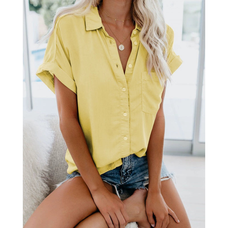 Summer WOMEN'S Short-Sleeved Lapel Button Shirt Blouse