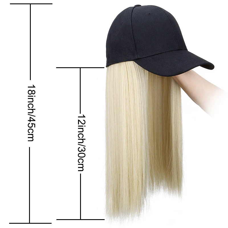 Synthetic 18Inch Long Straight Sports Style Baseball Hat Cap Wigs Adjustable Comfortable Hair Extension for Women Daily Use