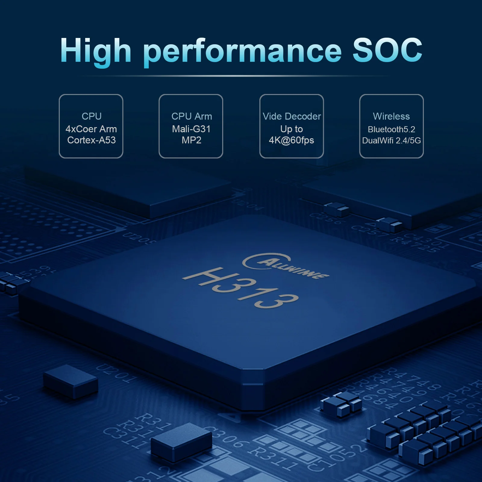 This T95Q TV box is equipped with H313 chipset, new Android 11.0 system, better software, game and application compatibility and better user interface. In other words, it can help your application start faster, consume less memory while running smoother, giving you better user experience.