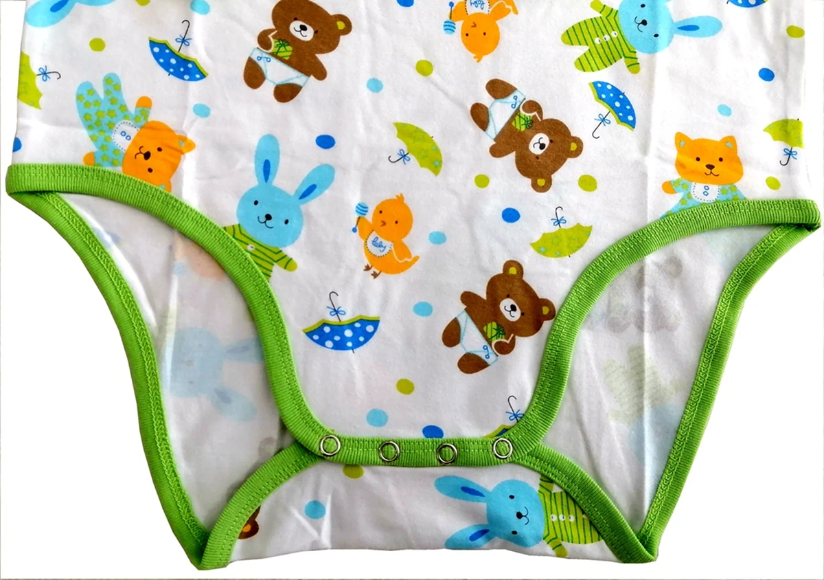 Snaps:one piece garment with 4 snap buttons at crutch area