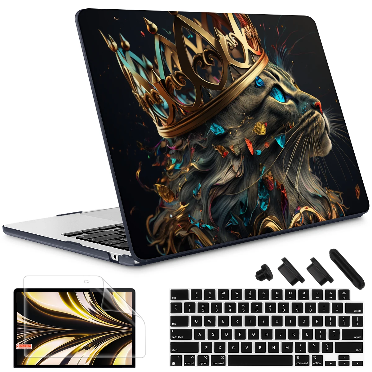 The Crown Cat Hard print case for MacBook 2025 M4 Air Pro 13 14 16 M2 2022 2023 A2681 A2779 A2780 Retina A1502 A2337 M1 A2289