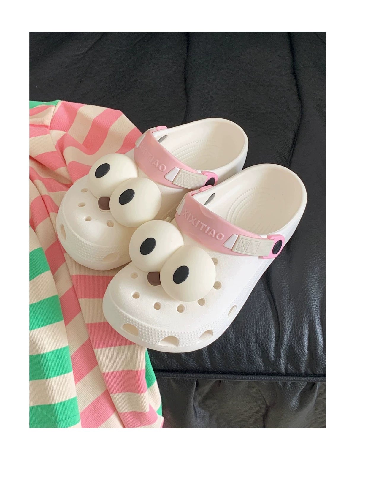 Thin Strip Fun Cartoon Funny Big Eye Couple Hole Shoes Outdoor Non-Slip Pump Beach Shoes Baby Boy and Girl Summer