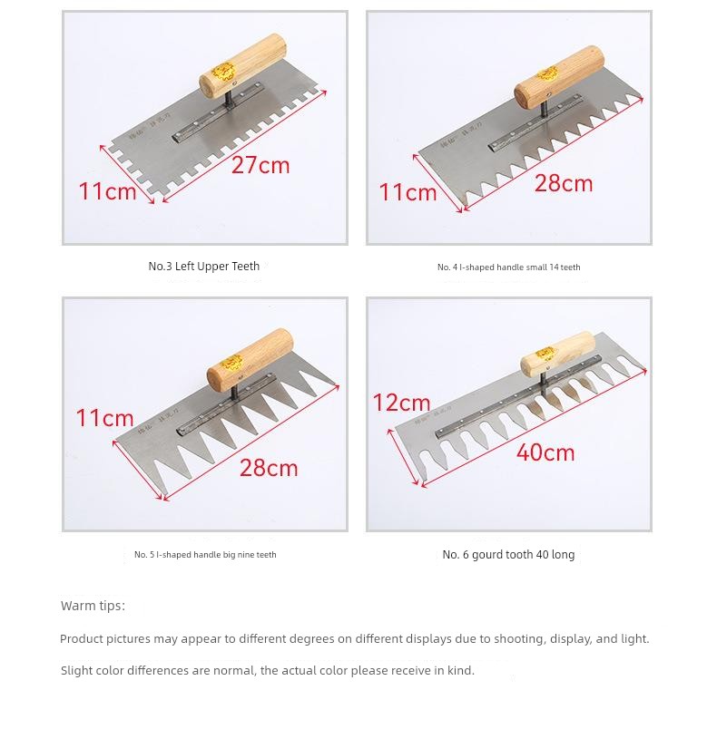 Tile Serrated Spatula Square Tooth Toothed Plastering Knife Paving Tile Plastering Knife Flat Gray Batch Ash Spoon Masonry Tool