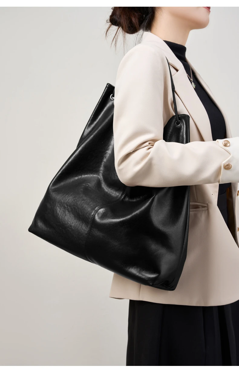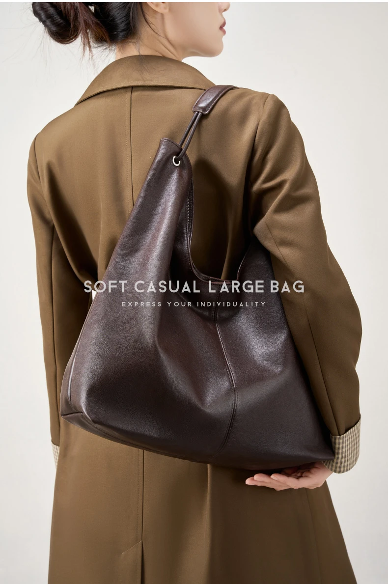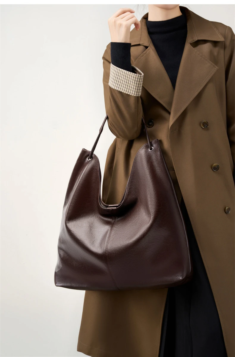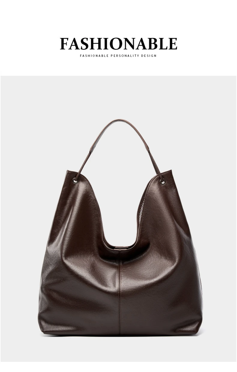 Toptrends Cowhide Genuine Leather Large Underarm Shoulder Bags For Women 2025 Luxury Designer Hobo Tote Bucket Ladies Handbags