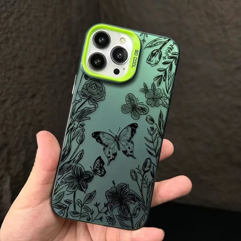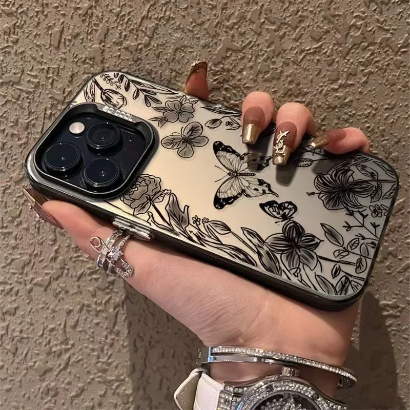 Trending Products Flower Butterfly Phone case for iPhone 15 Pro Max 14 13 12 11 XS XR Simplicity Plating Mirror Frame Cover