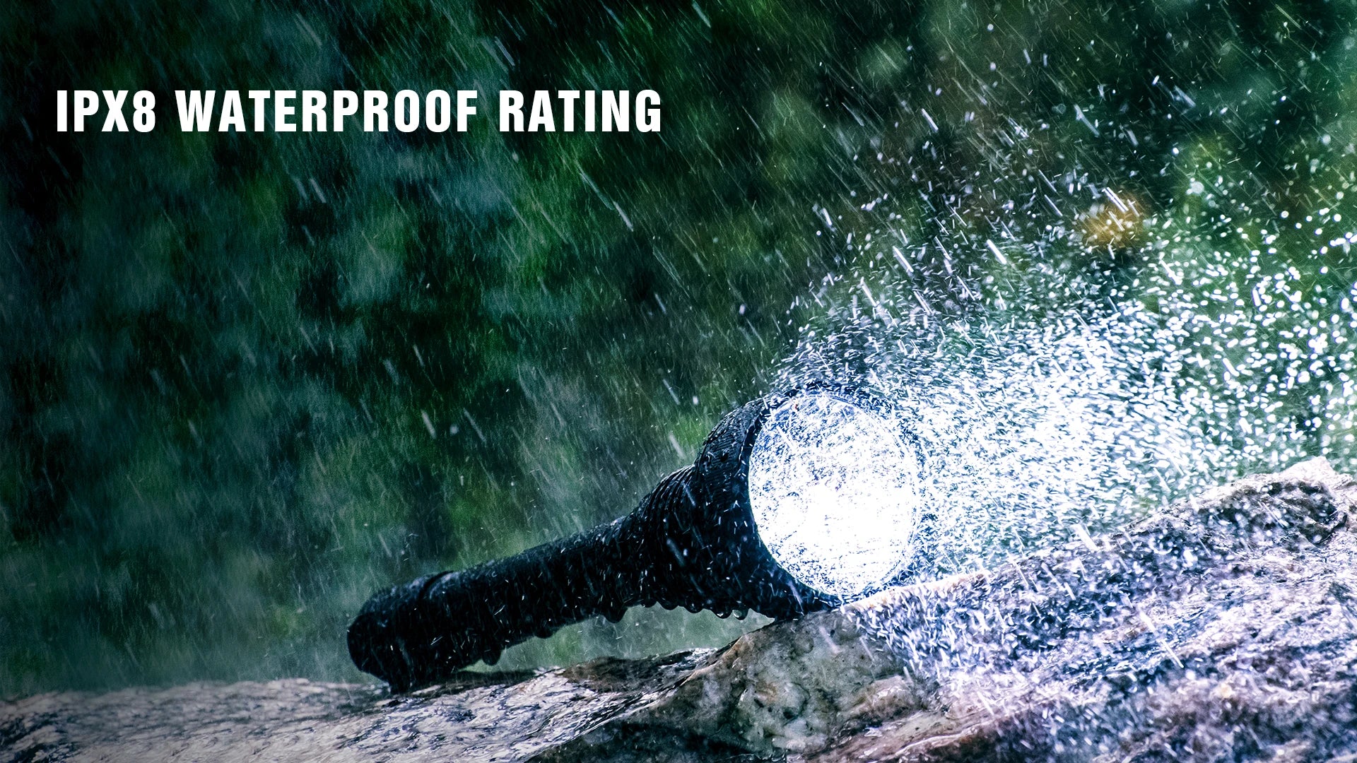 High Power Efficiency: powered by only 2*18650 batteries producing 2300Lm output