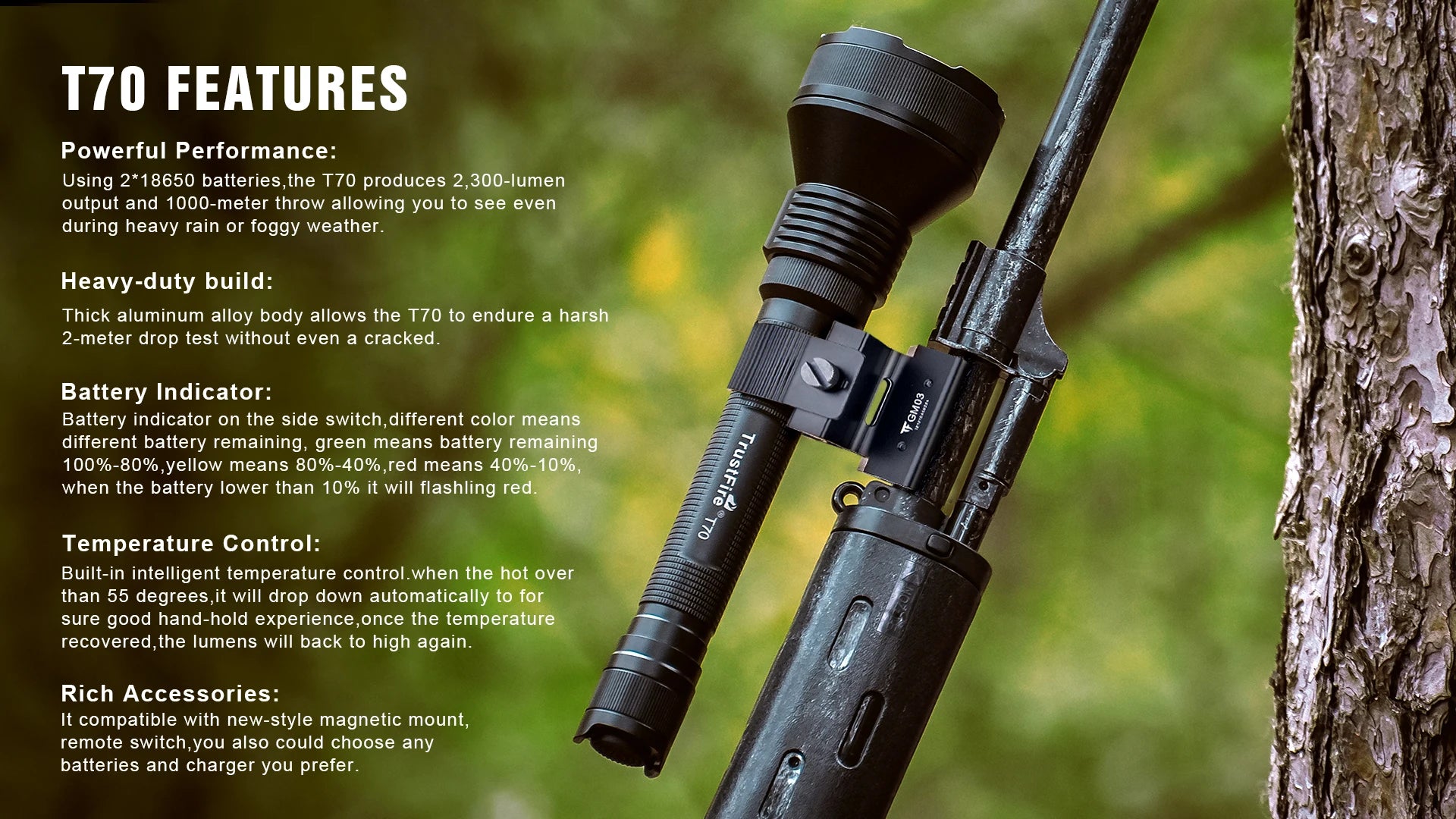 Trustfire T70 High Power Led Flashlights 1KM Long Range 2300LM Ultra Powerful Outdoor Torch Light for Hunting with Remote Switch