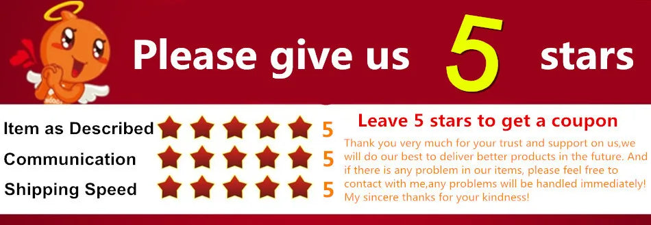 A: We regard cusotmers as our friends. We hope you can shop from us with more happiness and less worry. Please do not forget to leave us 5-Star feedback. Then you can contact our customer service to get a surprise gift.