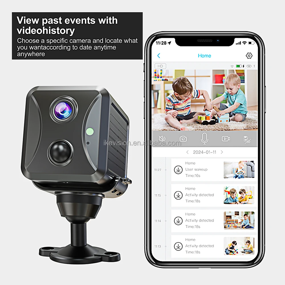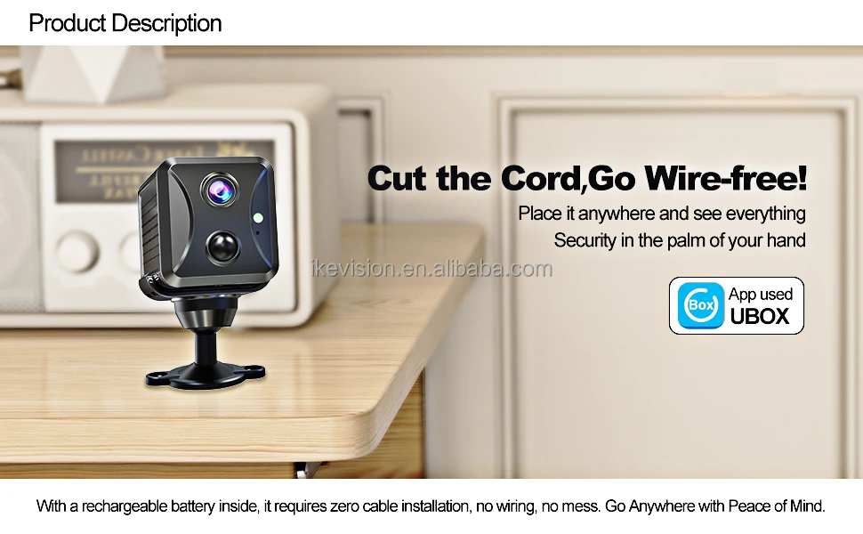Ubox Indoor Battery Powered 4G SIM Card Mini Size Camera 2MP 2400mAh Security CCTV PIR Motion Alarm Video TF Card Network Camera