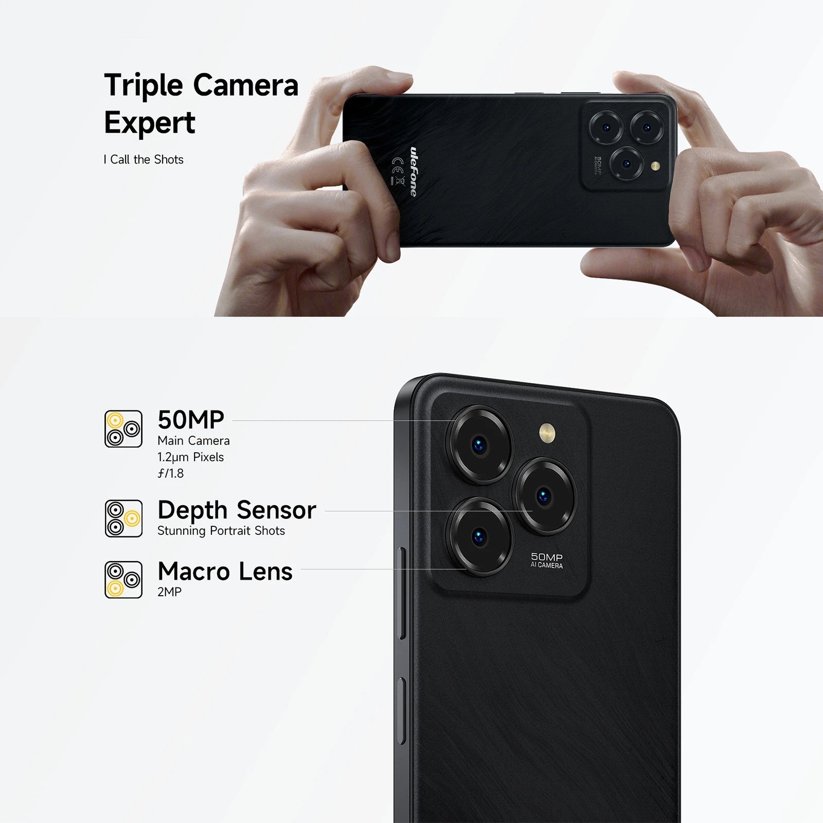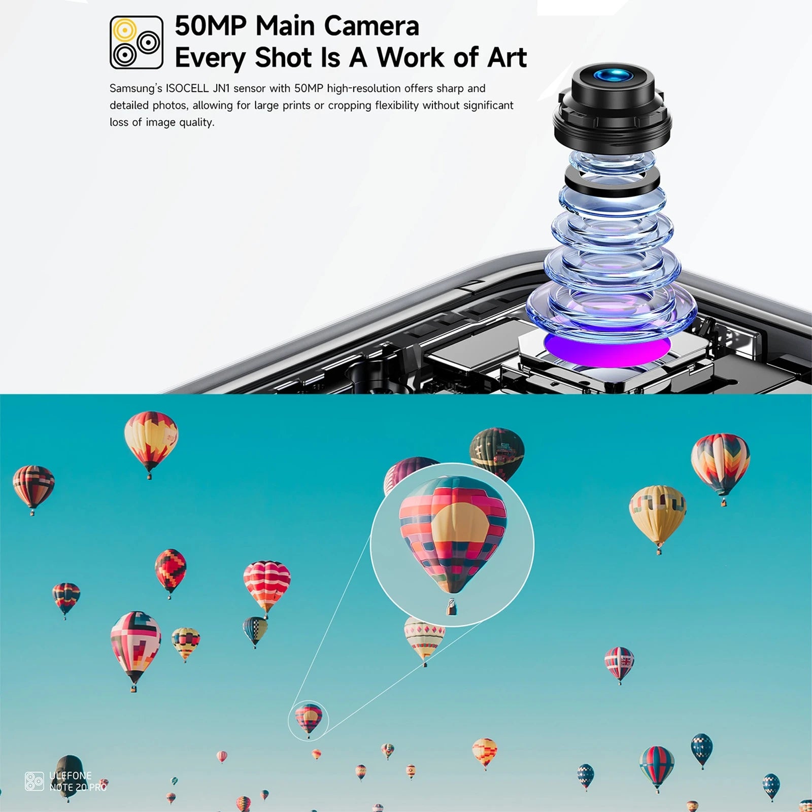 1. Rear Cameras: 50MP main (JN1 COMS, 0.64um, FOV 74.4 degree, F1.8, 5P lens) + 2MP macro