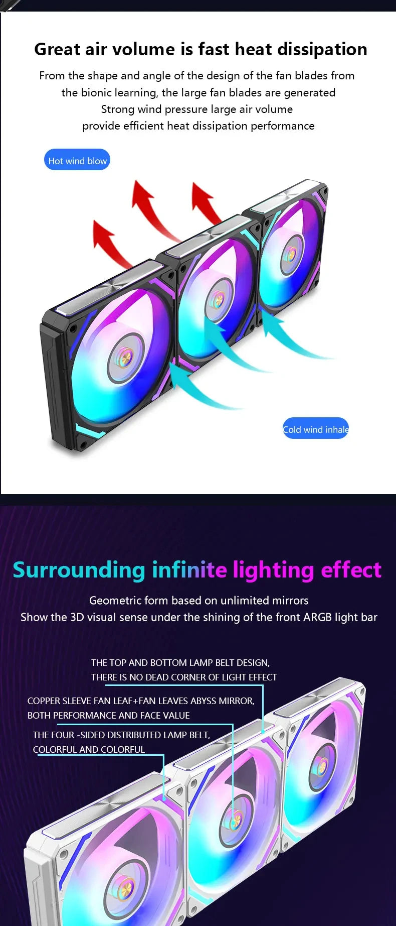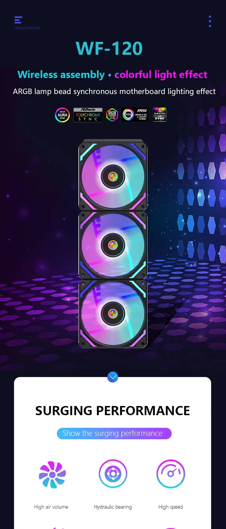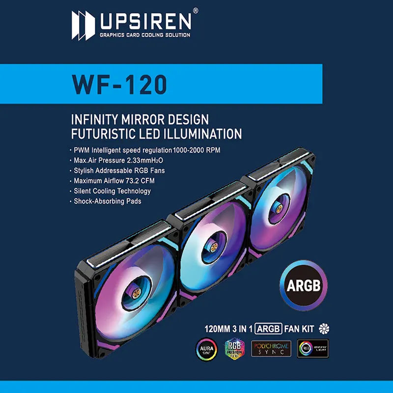 UPSIREN WF-120 ARGB PWM 3PCS Chassis fanARGB120mm/4PIN PWM/ Magic Color Wireless Stitching Computer heat dissipation fan