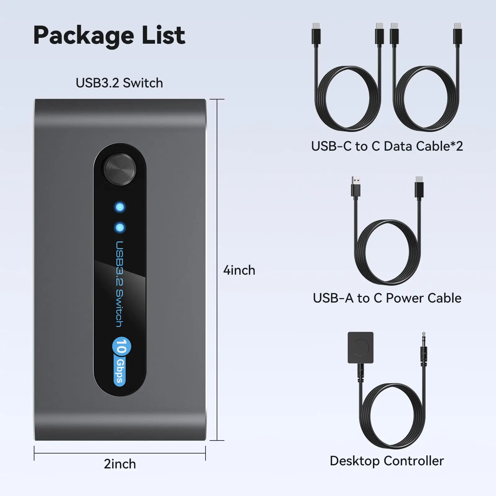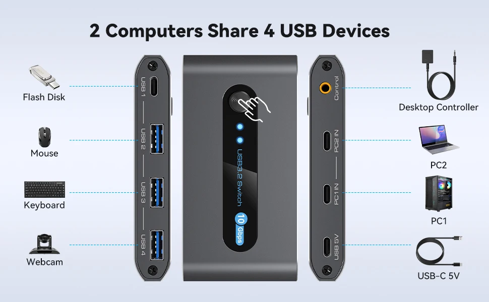 USB C Switch 2 Computers Share USB C & A Devices 10Gbps 4 Port USB 3.2 Switcher 2 PC for PC Laptop Share Keyboard Mouse