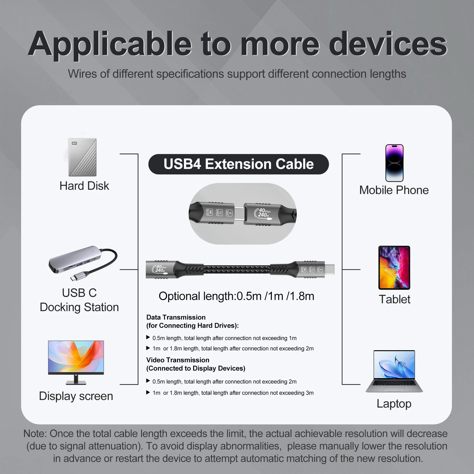 Version 1: PD240W fully functional USB C to C fast charging cable, support up to 48V/5A fast charging, support 8K/60Hz video output, 40Gbps transmission bandwidth