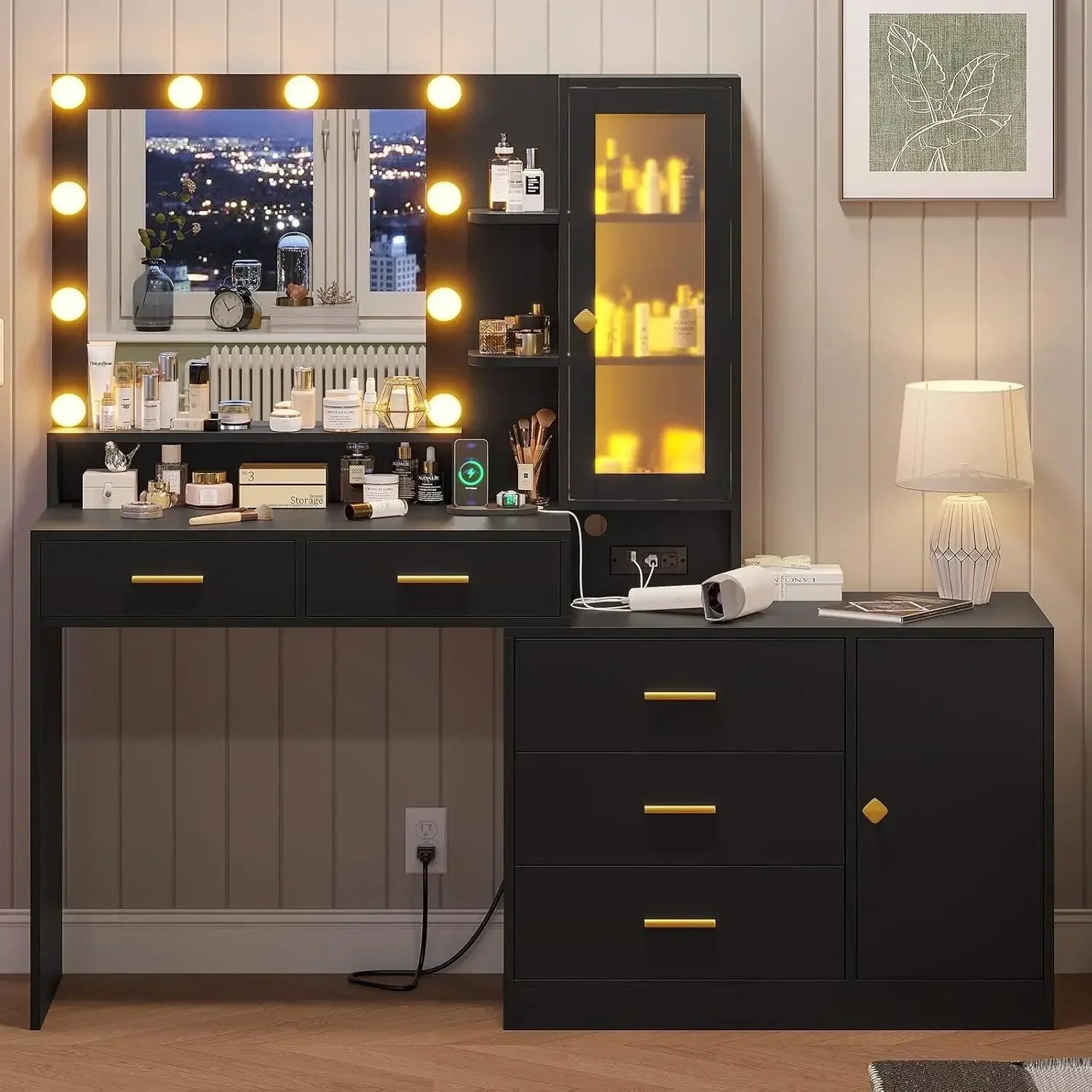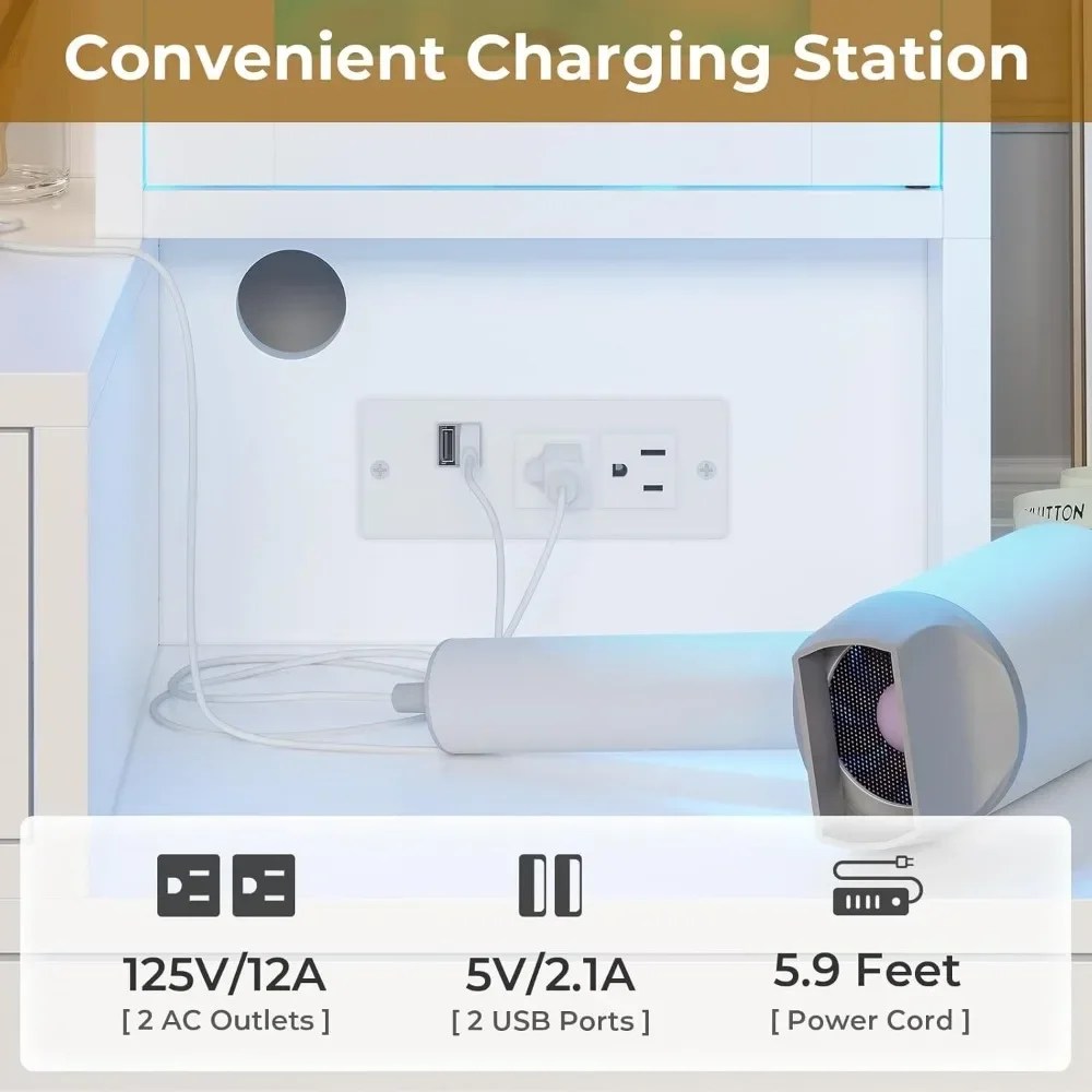 Vanity Desk, Makeup Vanity with Lights & Charging Station and Ambient Light, Vanity Table with Dresser, Bedroom Furniture