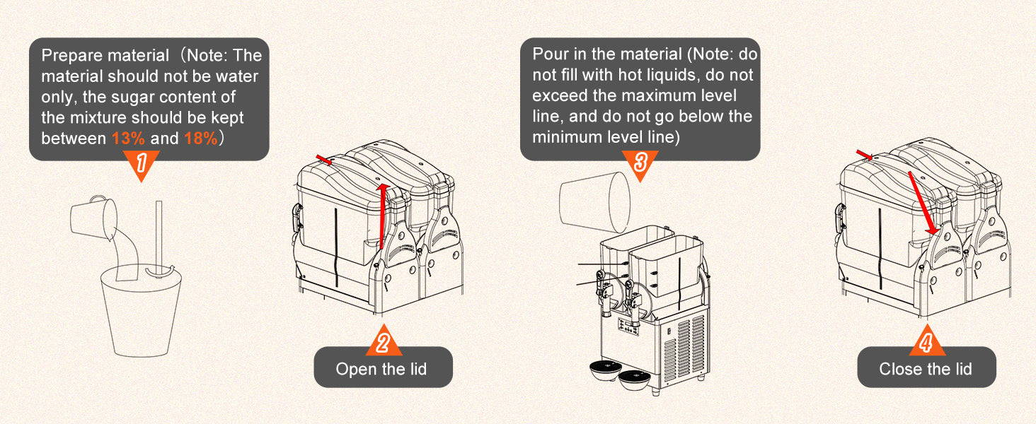 - Rapid Refrigeration & Blending: Our refrigeration system uses R290 refrigerant and has excellent features for fast cooling and efficient slush production, specially designed for the business of summer frozen drinks. The 860W powerful compressor has fast cooling capabilities that are energy saving while maintaining a quiet operation.