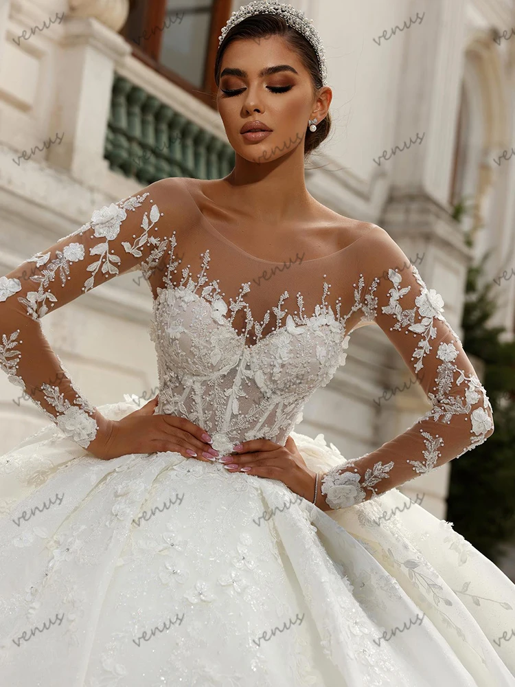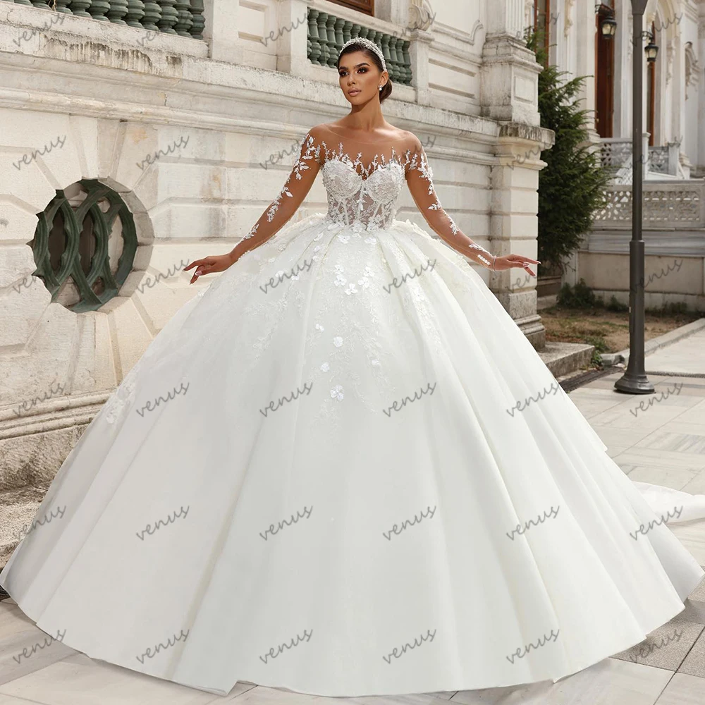 Vintage Wedding Dresses Charming Bridal Gowns Beading Appliques O Neck Full Sleeves Robes Glamorous Vestidos De Novia Customized