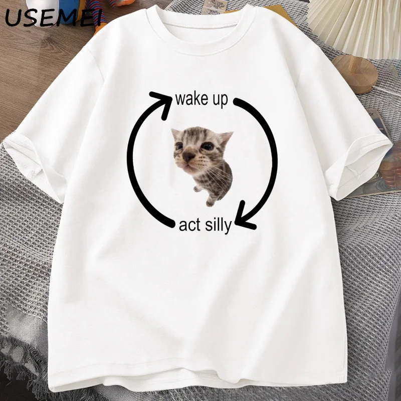 Wake Up Act Silly Cat T Shirt Men Women Casual Men's T-shirt Man Clothes Cotton Short Sleeve Funny Oversized Streetwear Tshirt