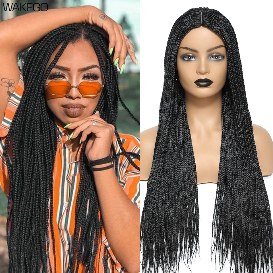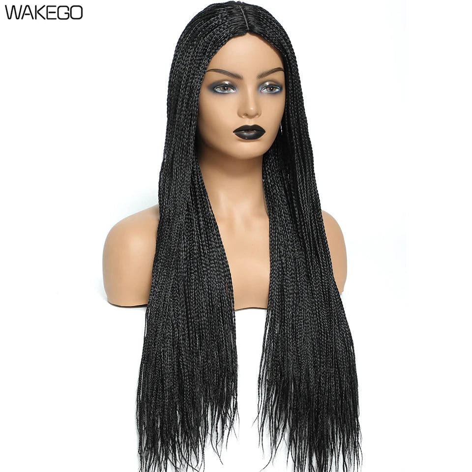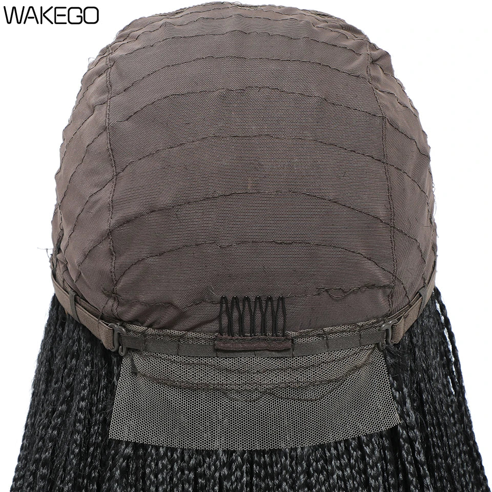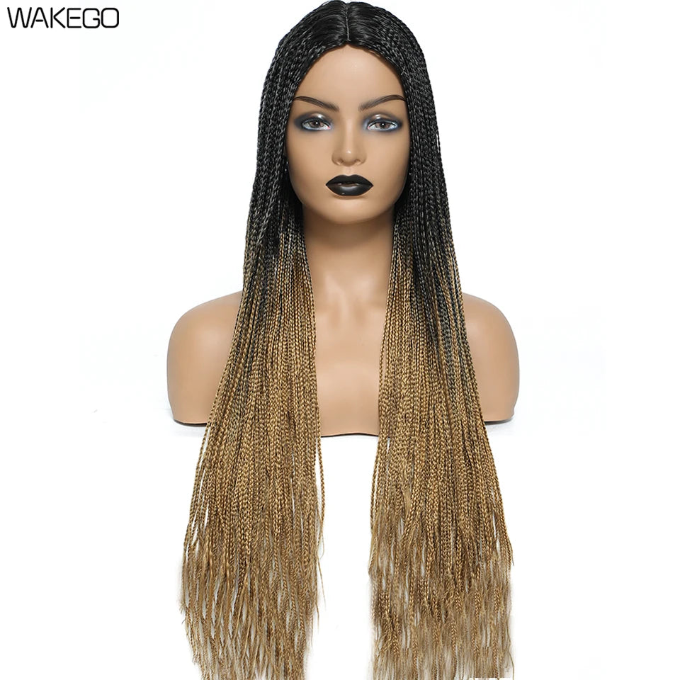 Wakego 26 Inch Ombre Box Braided Wigs For Black Women Braided Wig Fake Scalp Heat Resistant Braiding Hair Wig Peruca Sintetica