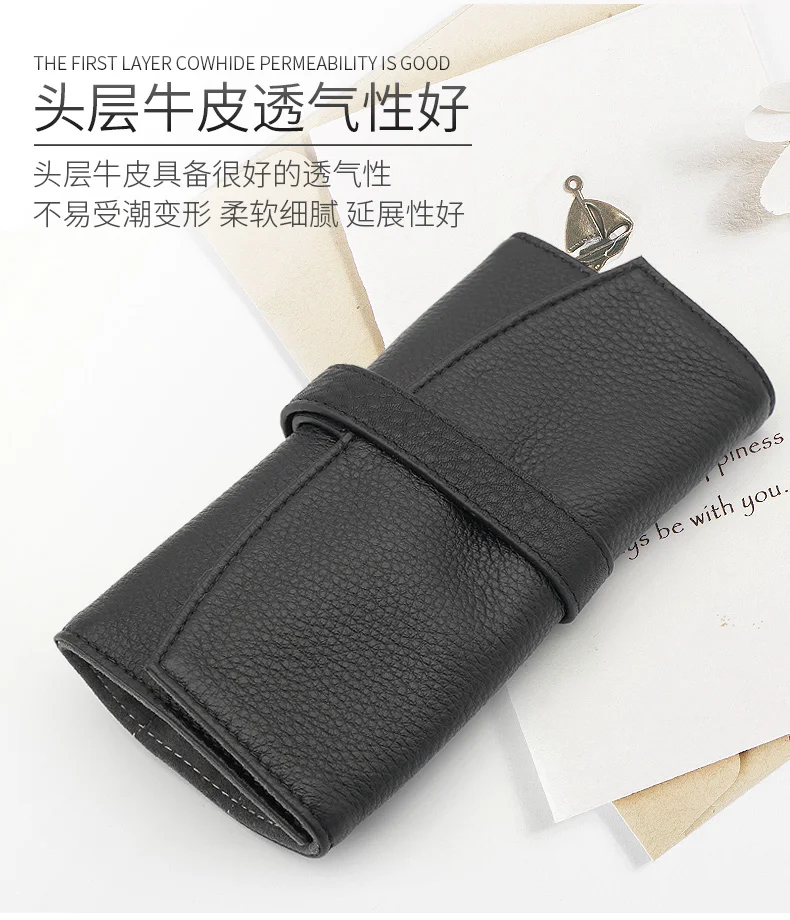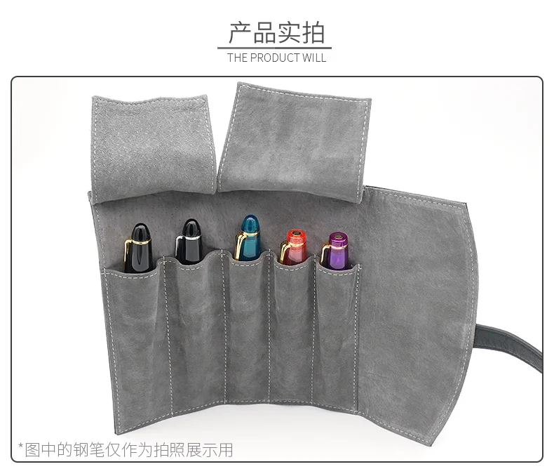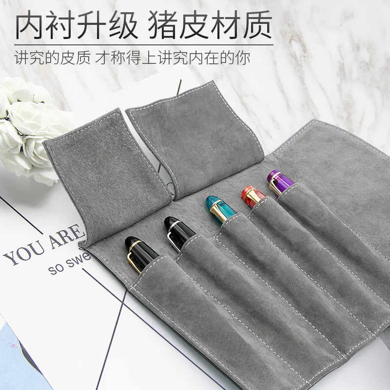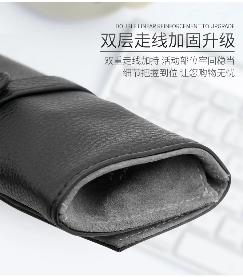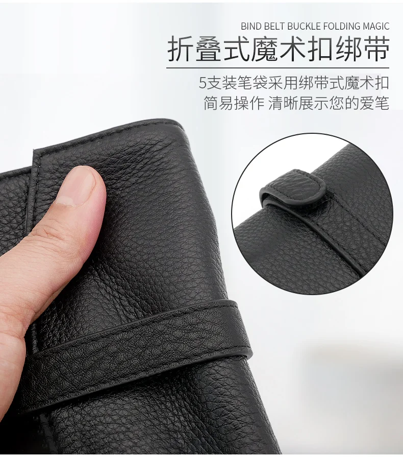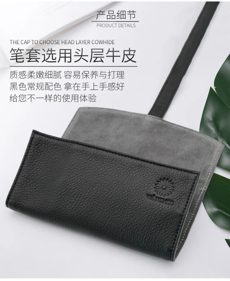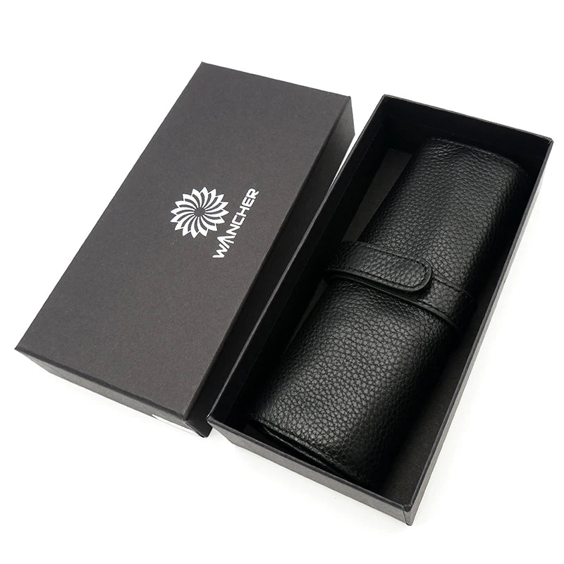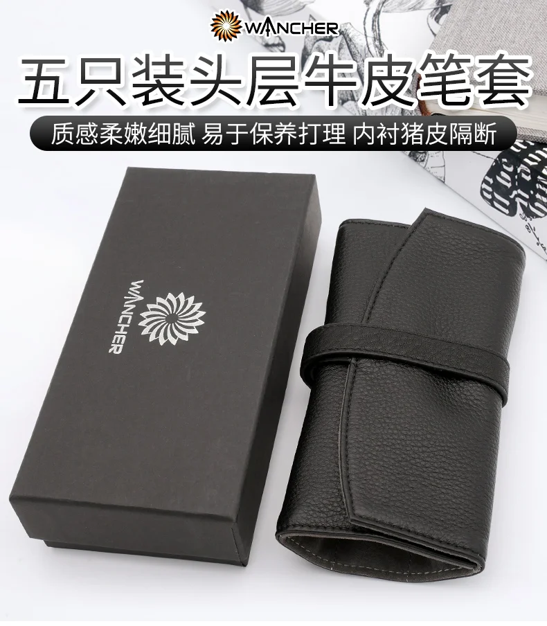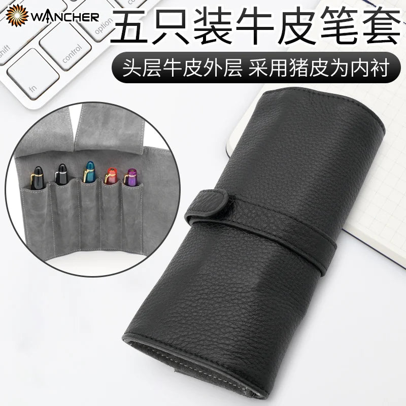 Wancher Genuine Leather Pen Bag 5 Pens Roll Pencil Bag Gift Box Protective Pen Ballpoint Pen Office Accessories Pen Set
