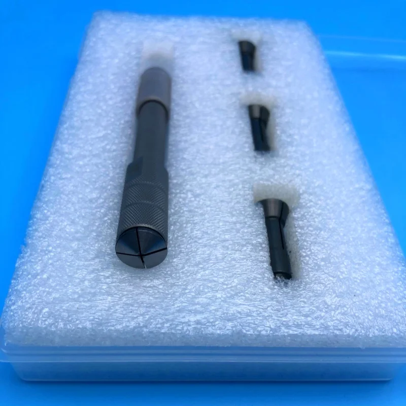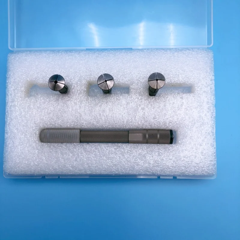 Precision holder set a handle and 4 collets, easy to clamp the hairspring gears balance wheel tip watch handle core and other micro-parts.