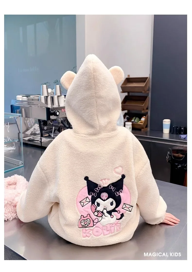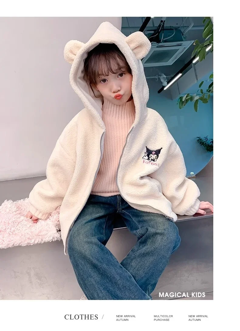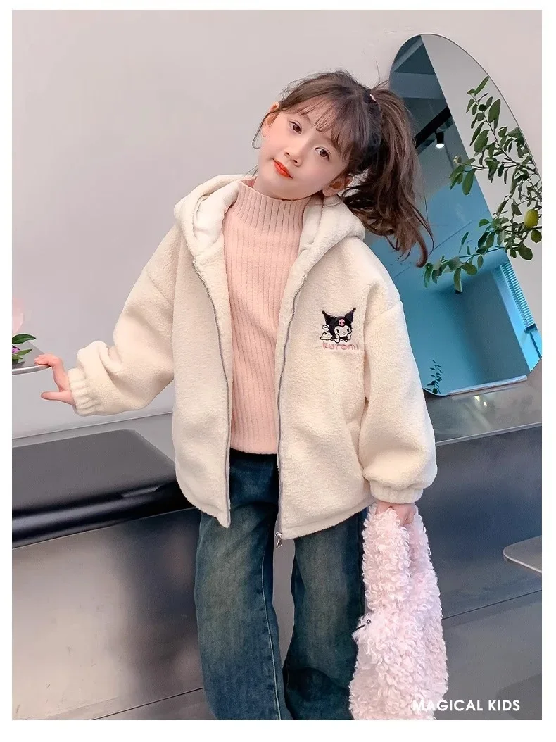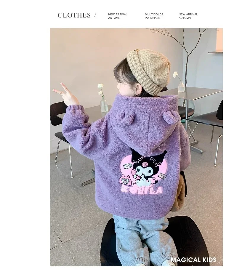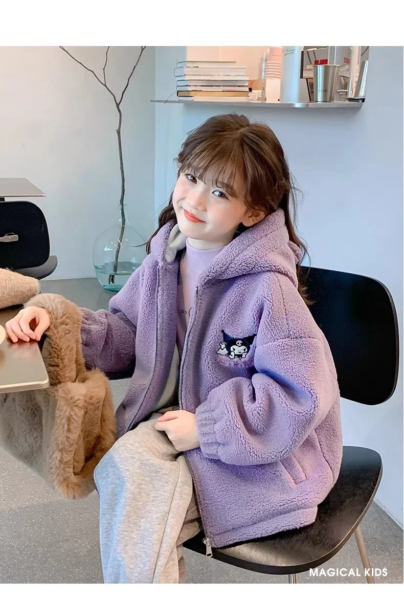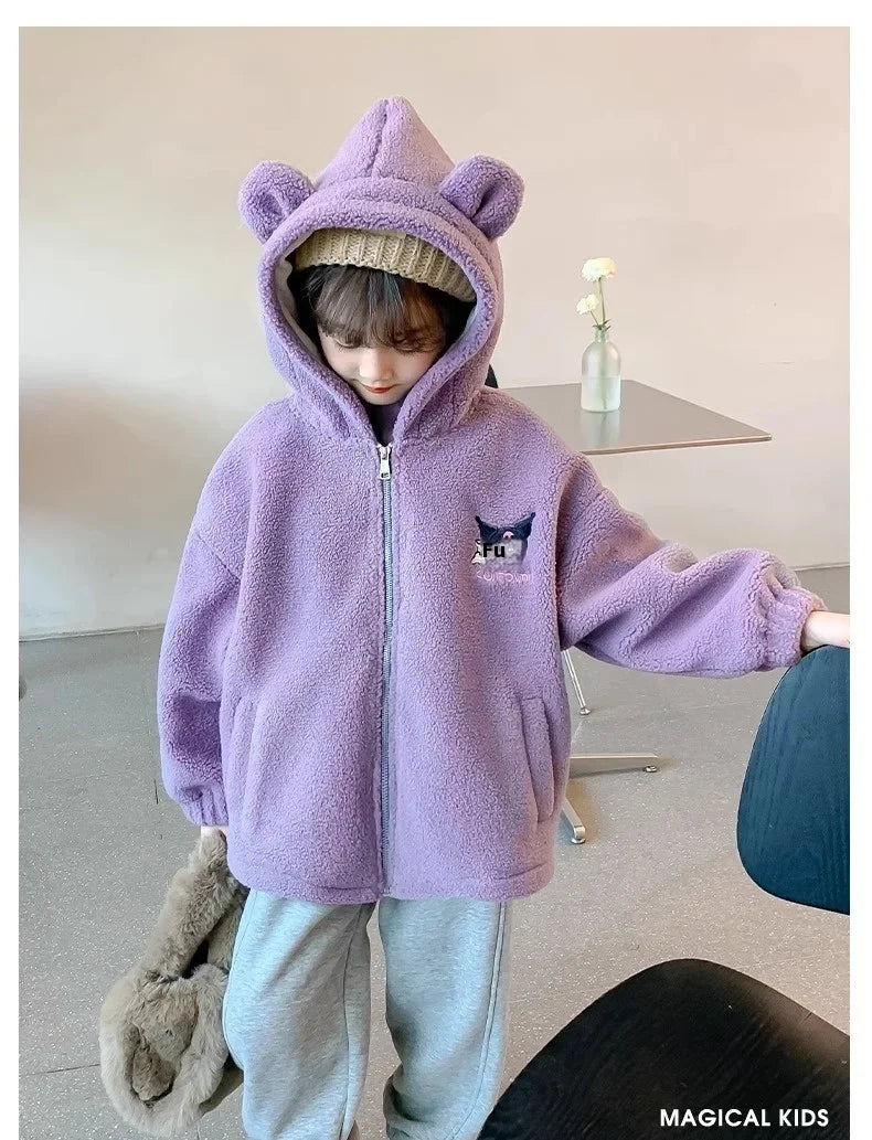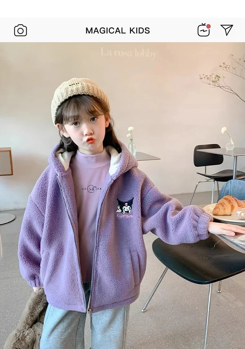 Winter 2025 New Cartoon Sanrio Kuromi Girls' Velvet Jacket Plus Velvet Children'S Polar Fleece Hooded Clothes Girls Winter Cloth