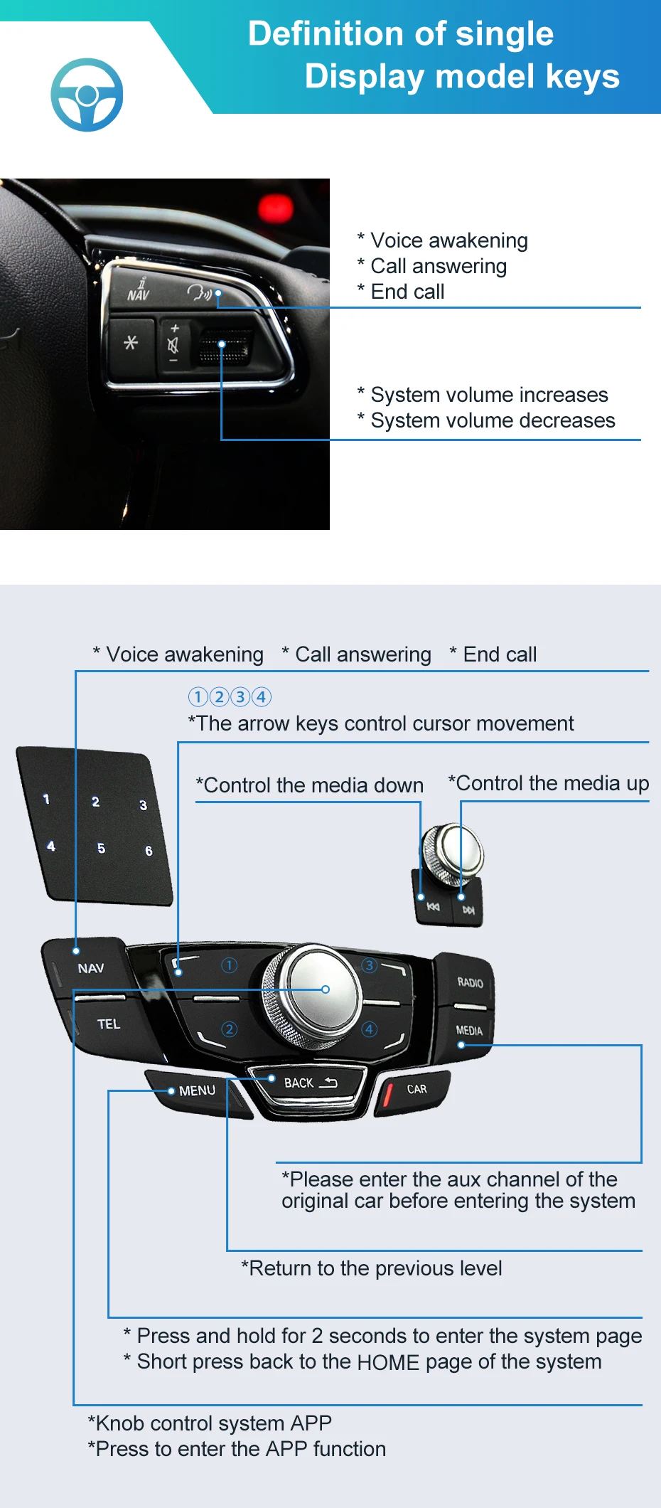 *If your car no have AUX but has the AMI jack please purchase an adapter to activate the sound
