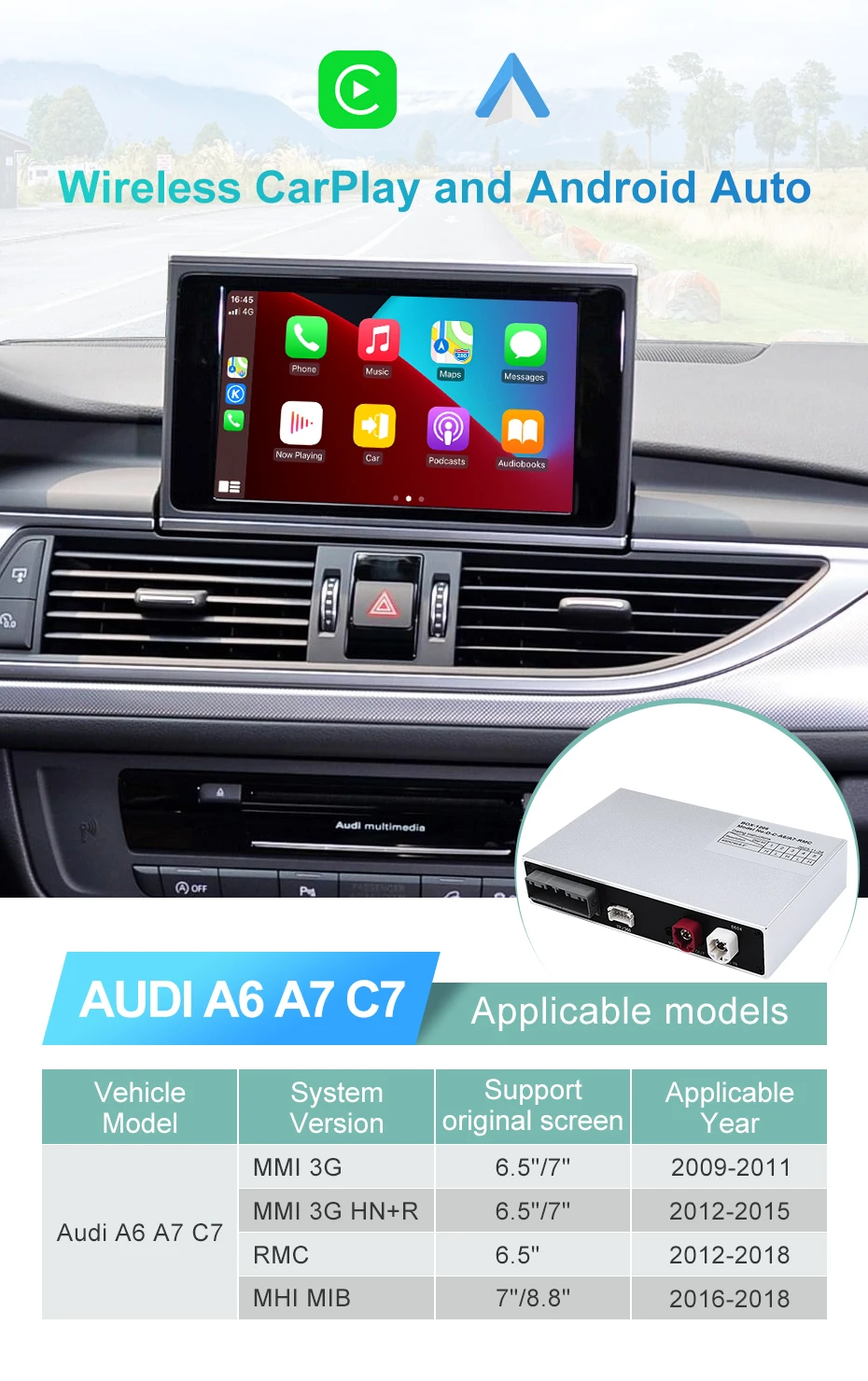 Wireless CarPlay For Audi A6 A7 C7 MMI 3G HN+R 2009-2015 RMC 2012-2018 MIB 2016-2018 Car Play Android Auto Reverse Camera